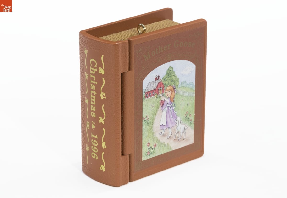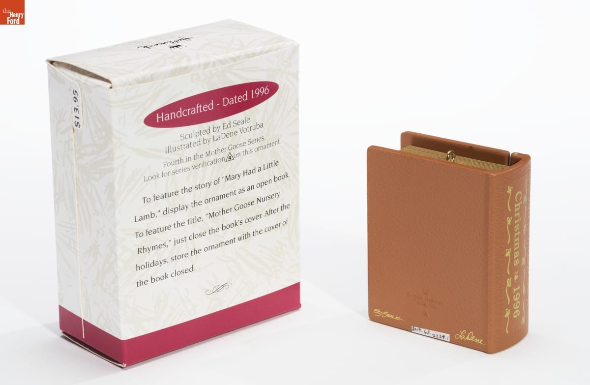 Handcrafted - Dated 1996 / Sculpted by Ed Seale / Illustrated by LaDene Votruba / Fourth in the Mother Goose Series / Look for series verification 4 on this ornament. / To feature the story of "Mary Had a Little / Lamb," display the ornament as an open book / To feature the title, "Mother Goose Nursery / Rhymes," just close the book's cover. After the / holidays, store the ornament with the cover of / the book closed.