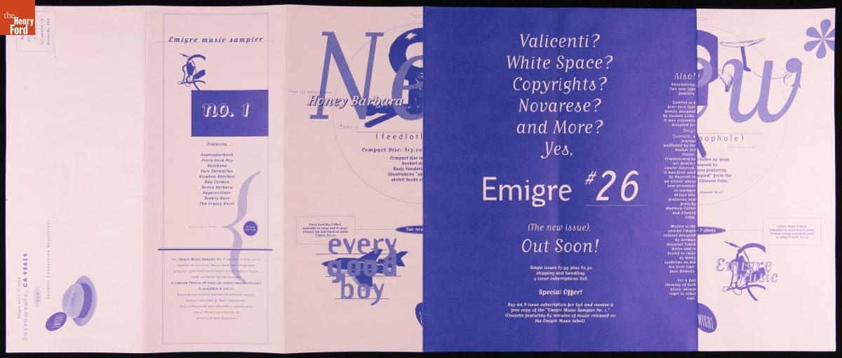 Mailer, "Emigre Music Sampler No. 1," 1991