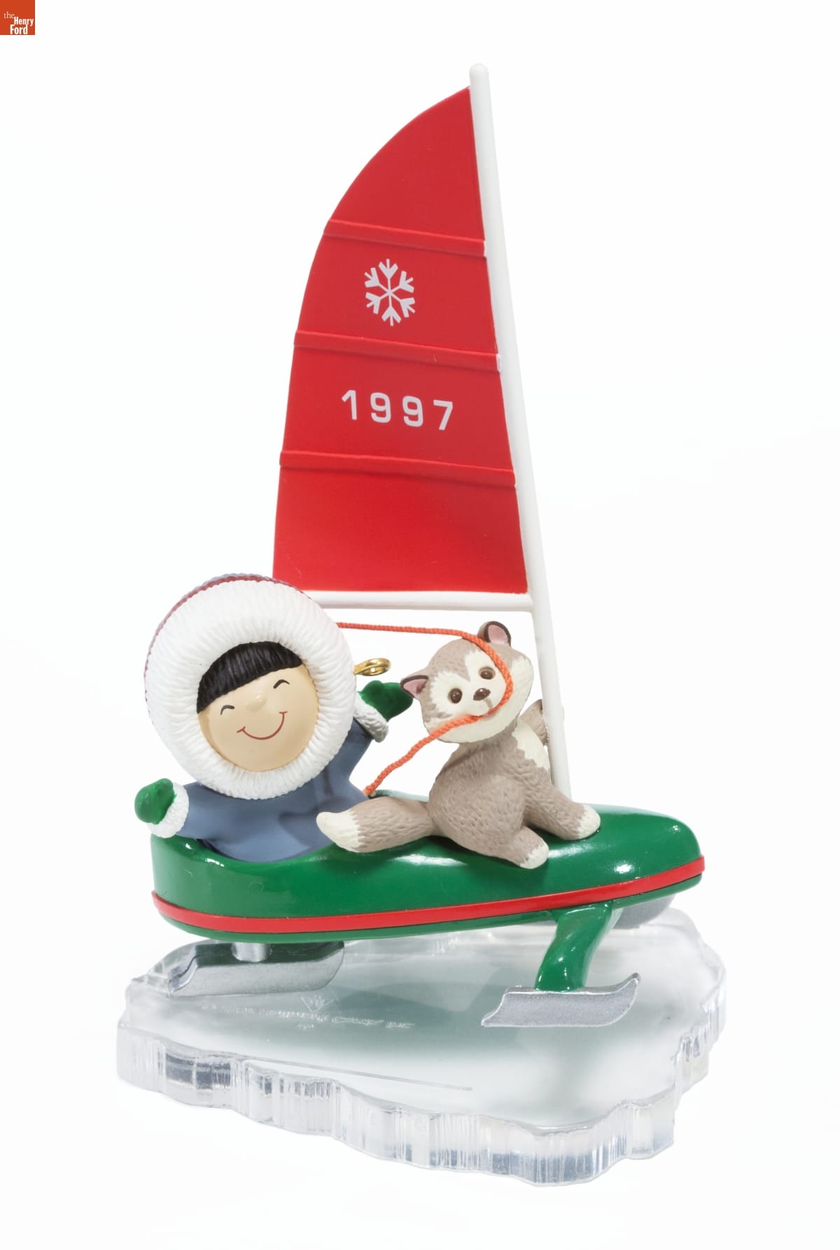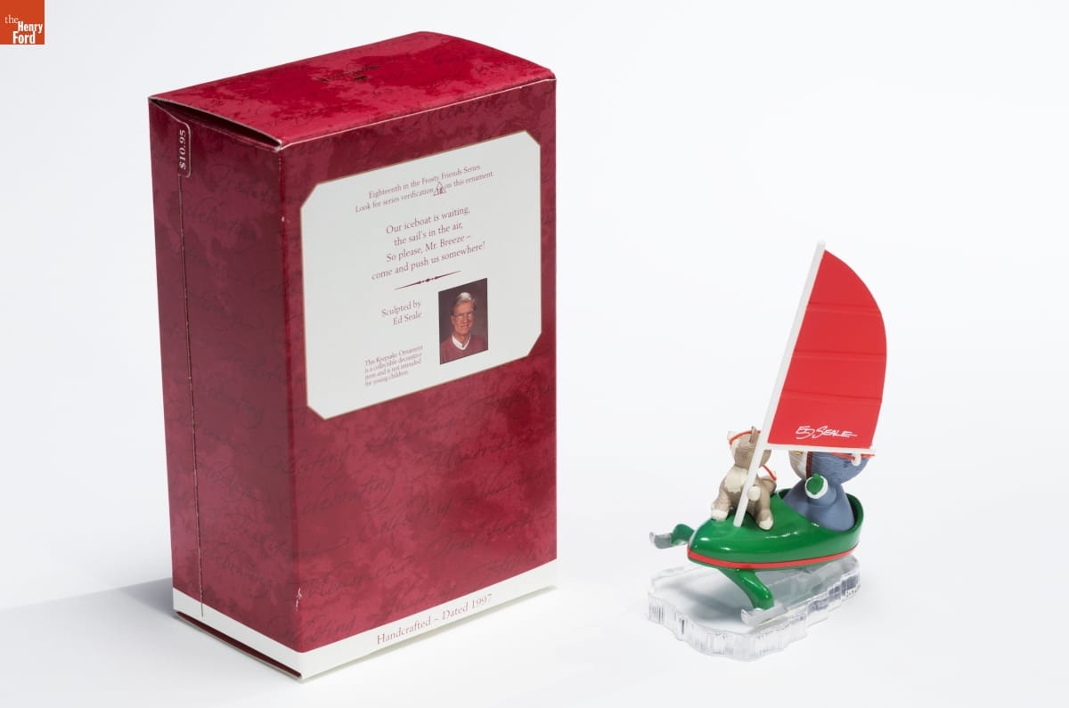 Eighteenth in the Frosty Friends Series. / Look for series verification 18 on this ornament. / Our iceboat is waiting, / the sail's in the air, / So please, Mr. Breeze - / come and push us somewhere! / Sculpted by / Ed Seale / This Keepsake Ornament / is a collectible decorative / item and is not intended / for young children. / Handcrafted - Dated 1997