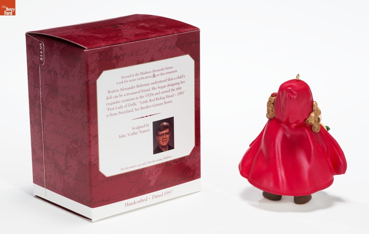 Second in the Madame Alexander Series. / Look for series verification 2 on this ornament. / Beatrix Alexander Behrman understood that a child's / doll can be a treasured friend. She began designing her / exquisite creations in the 1920s and earned the title / "First Lady of Dolls." "Little Red Riding Hood - 1991" / is from Storyland, her Brother Grimm Series. / Sculpted by / John "Collin" Francis / For decorative use only. Not for young children. / Handcrafted - Dated 1997