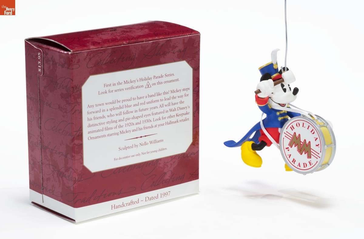First in the Mickey's Holiday Parade Series. / Look for series verification 1 on this ornament. / Any town would be proud to have a band like this! Mickey steps / forward in a splendid blue and red uniform to lead the way for / his friends, who will follow in future years. All will have the / distinctive styling and pie-shaped eyes featured in Walt Disney's / animated films of the 1920s and 1930s. Look for other Keepsake / Ornaments starring Mickey and his friends at your Hallmark retailer. / Sculpted by Nello Williams / For decorative use only. Not for young children. / Handcrafted - Dated 1997