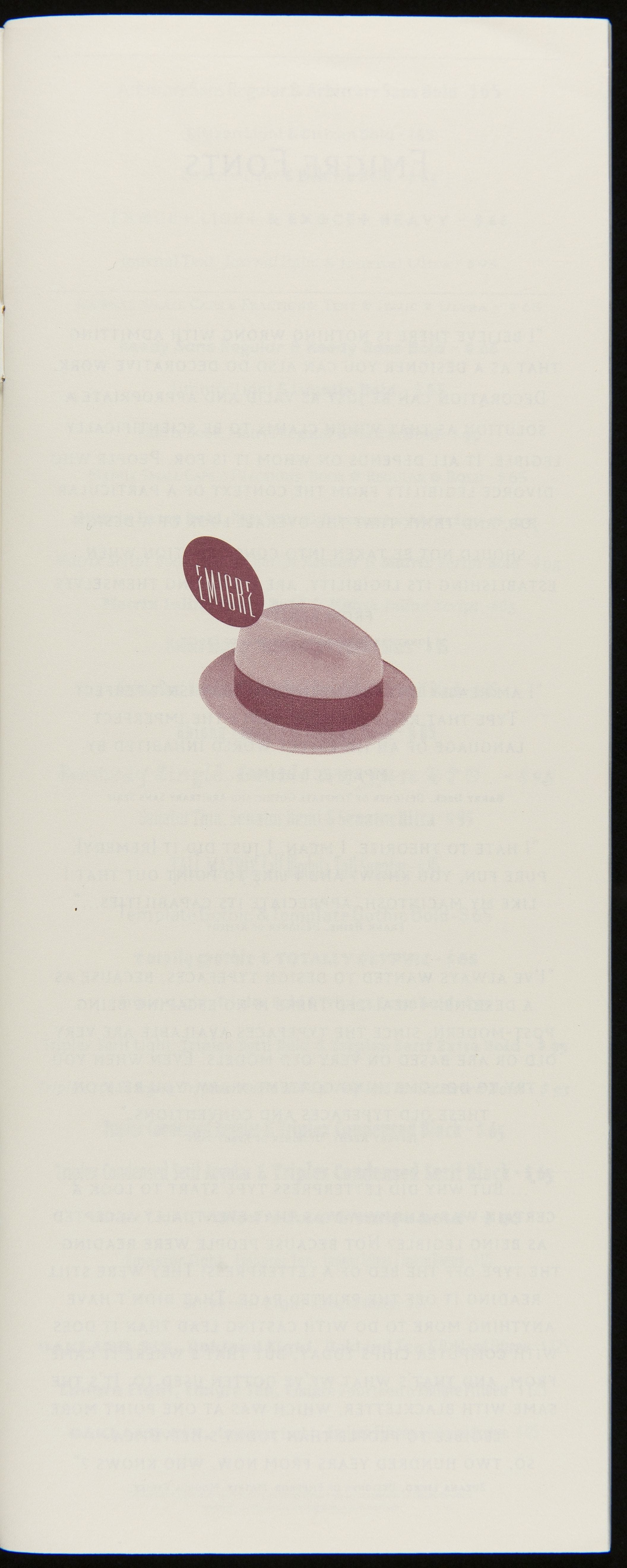 Emigre is a digital type foundry established by Rudy VanderLans and Zuzana Licko. The company's history is linked with the introduction of the 1984 Macintosh computer, used to design their early bitmapped typefaces. Emigre's digital work gained notoriety -- defying visual communication standards with fractured, layered combinations of text and image. This item advertised fonts or other items available for purchase.