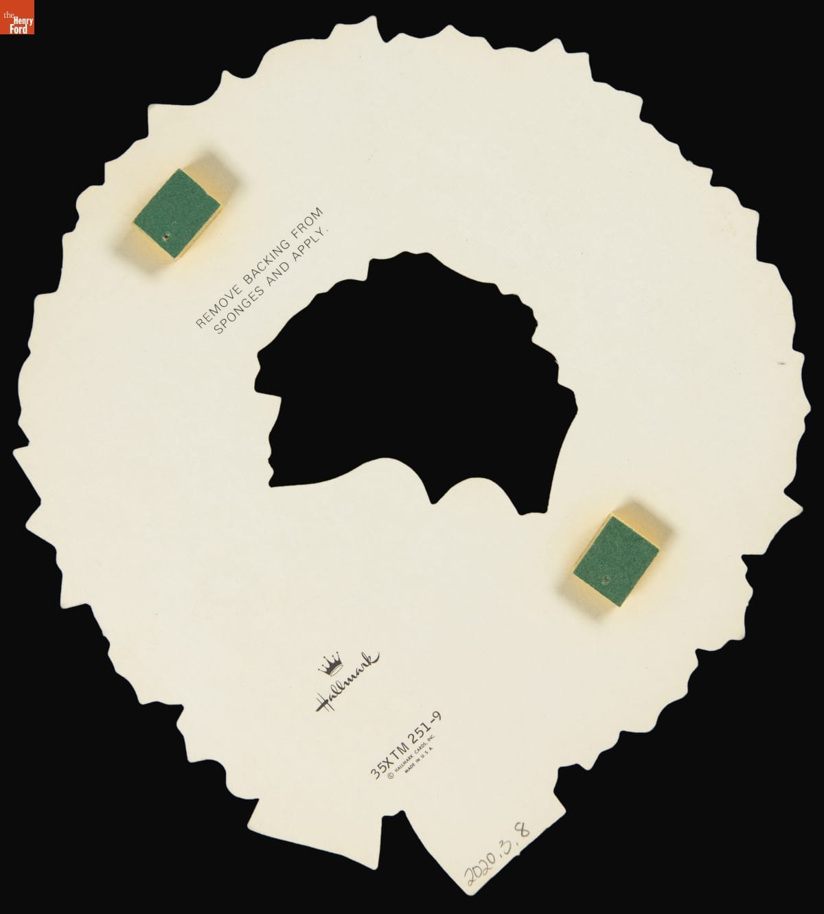 on back of decoration: REMOVE BACKING FROM / SPONGES AND APPLY / Hallmark / c. Hallmark Cards, Inc. / MADE IN U.S.A.