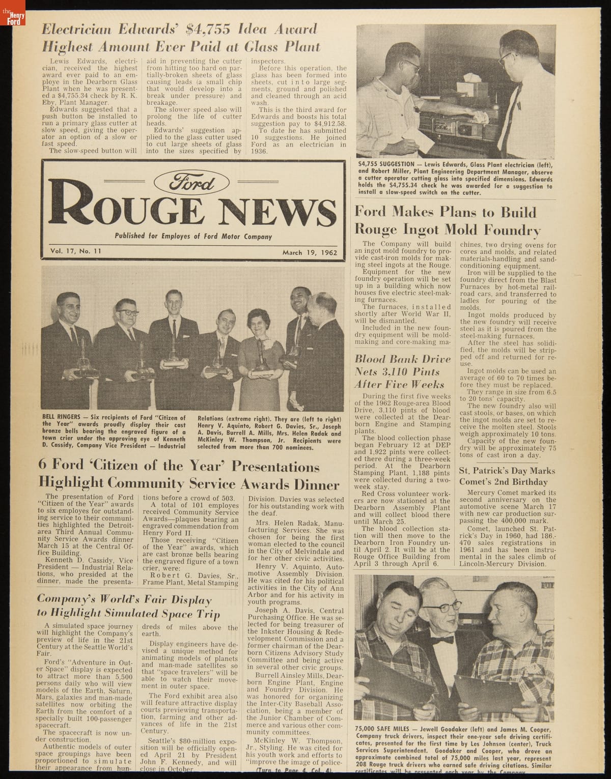Ford Motor Company Publication, "Rouge News," Volume 17, No. 11, March 19, 1962