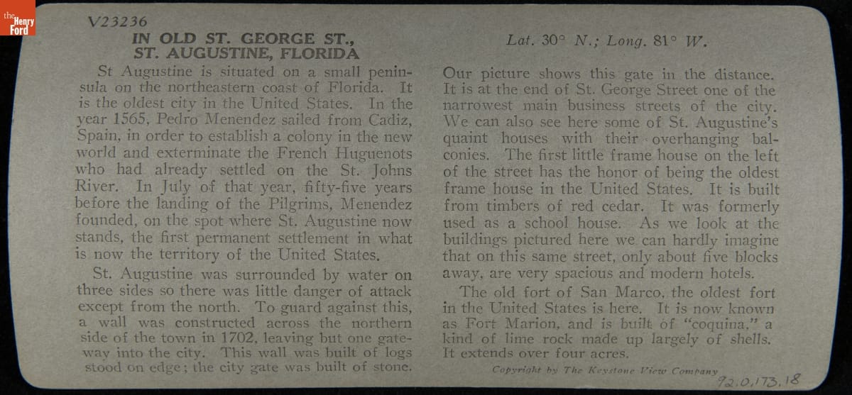 front, bottom: V23236--In Old St. George Street, St. Augustine, Fla.