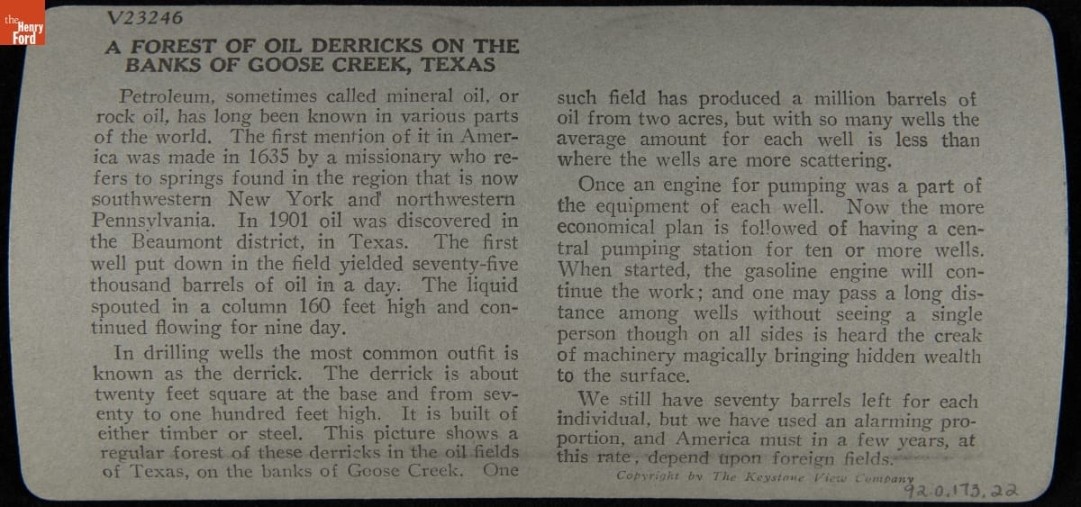 front, bottom: V23246--A Forest of Oil Derricks on Goose Creek, Texas