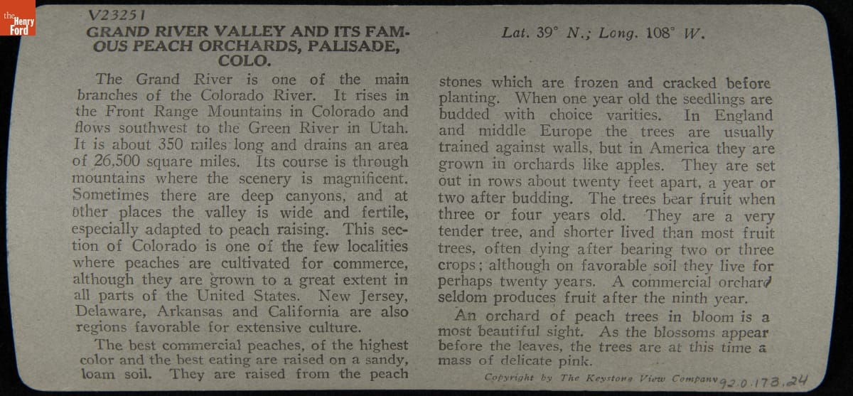 front, bottom: V23251--Grand River Valley and Its Famous Peach / Orchards, Palisade, Colo.