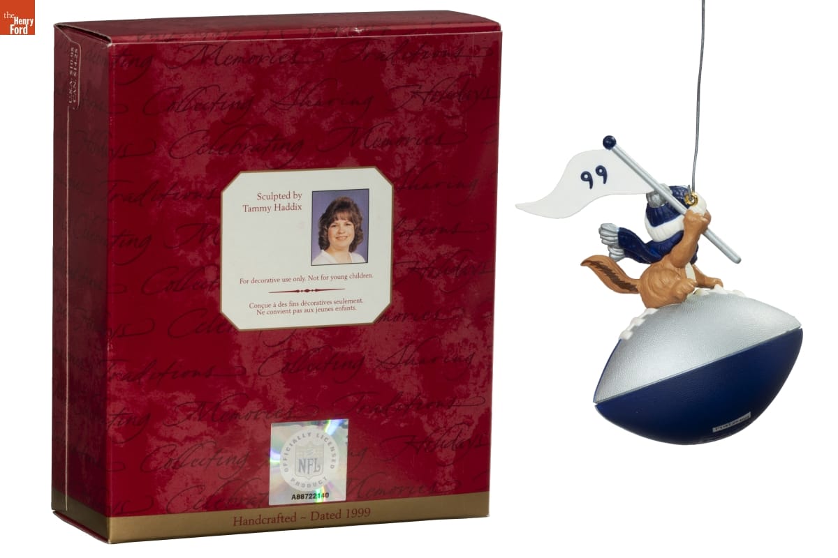 Sculpted by / Tammy Haddix / For decorative use only. Not for young children. / Concue a des fins decoratives seulement. / Ne convient pas aux jeunes enfants. / OFFICIALLY LICENSED / NFL / PRODUCT / A 88722140 / Handcrafted - Dated 1999