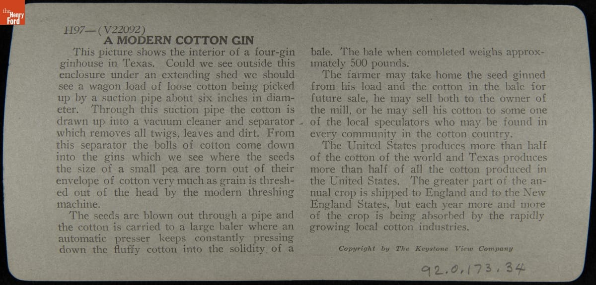 22092 - Cotton Gins--one of the greatest industrial inventions--separating fiber from seed, Texas