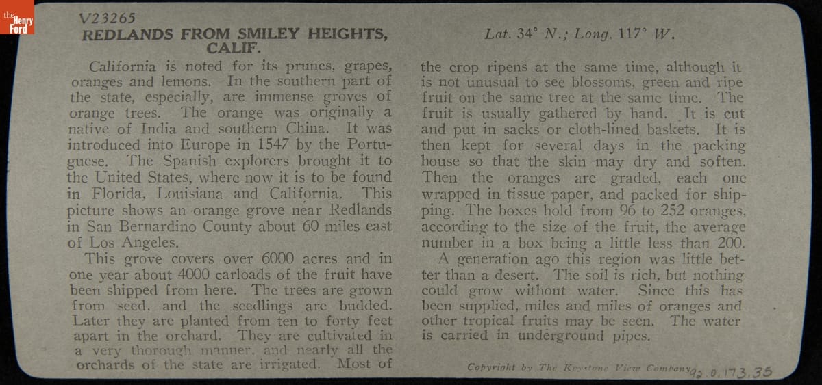 front, bottom: V23265--Redlands and Its Wealth of Orange Groves, Calif.