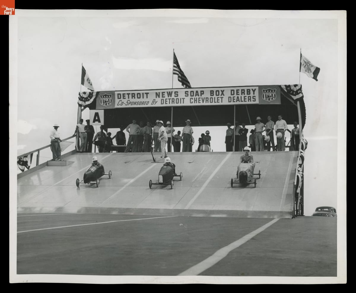 The Detroit News sponsored its first annual Soap Box Derby competition in 1935. Winners advanced to the national contest in Akron, Ohio. Detroit's race took place in Rouge Park until 1956, when it moved to purpose-built Derby Hill. The Detroit News ended its sponsorship after 1971. The Detroit derby itself ended in the 1990s.