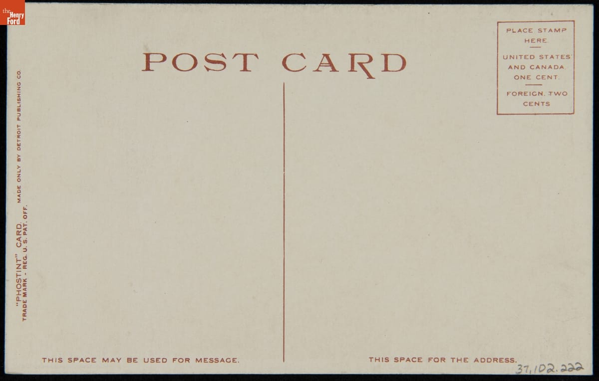 back, left: "PHOSTINT" CARD MADE ONLY BY DETROIT PUBLISHING CO. / TRADE MARK - REG. U.S. PAT. OFF.