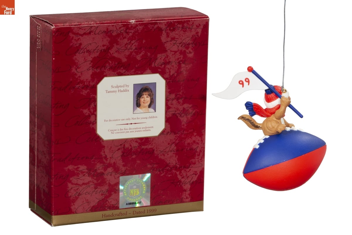 Sculpted by / Tammy Haddix / For decorative use only. Not for young children. / Concue a des fins decoratives seulement. / Ne convient pas aux jeunes enfants. / OFFICIALLY LICENSED / NFL / PRODUCT / A 88958447 / Handcrafted - Dated 1999