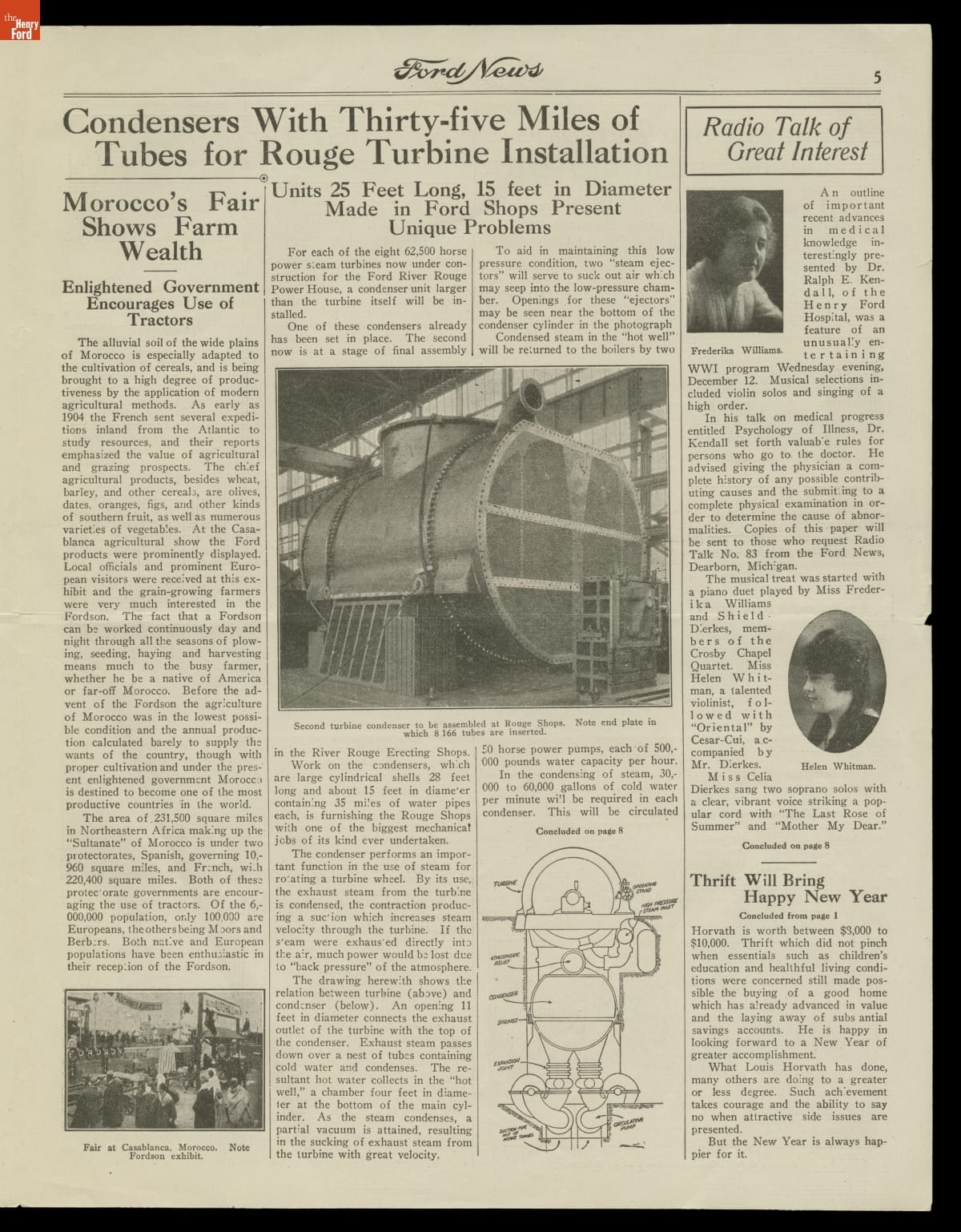 Ford Motor Company published Ford News from 1920 to 1942. The magazine informed readers about the automaker's activities. Henry Ford purchased the Detroit, Toledo & Ironton Railroad in 1920, and he built a 15-mile branch from DT&I's mainline at Flat Rock, Michigan, to Ford's Rouge plant in 1923. Ford News celebrated the new branch that "speeds Rouge freight."