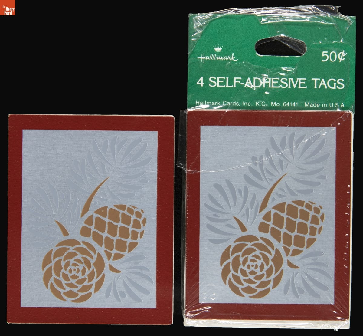 on front of packaging: Hallmark 50 cents / 4 Self-Adhesive Tags / Hallmark Cards, Inc., K.C., MO 64141 Made in U.S.A.