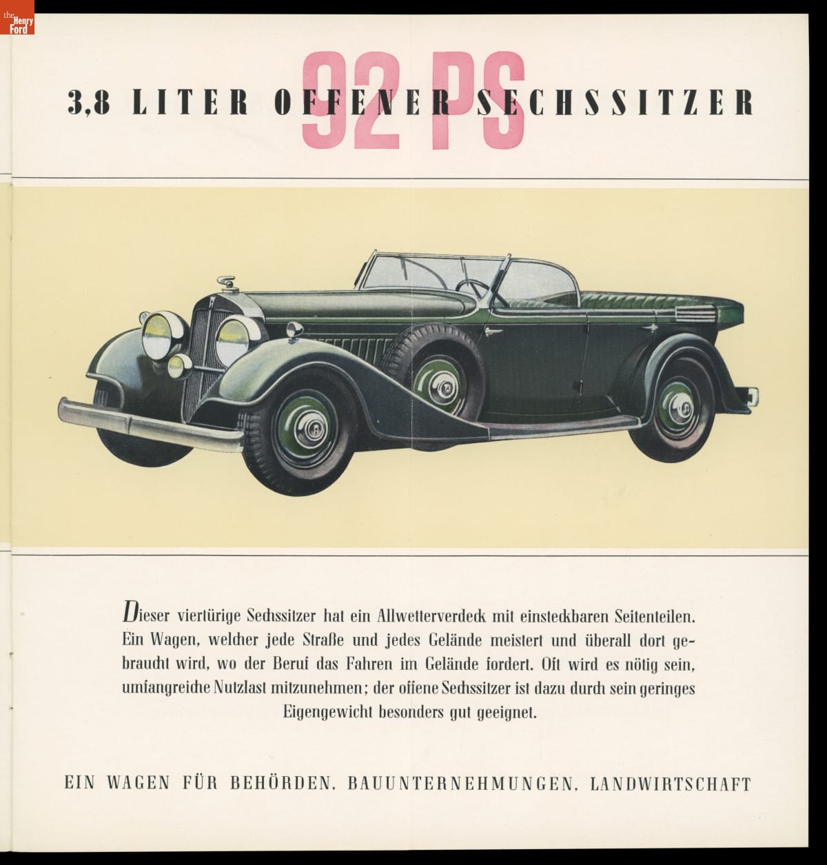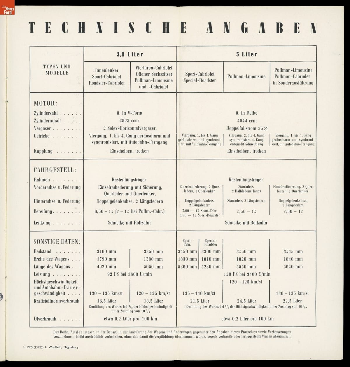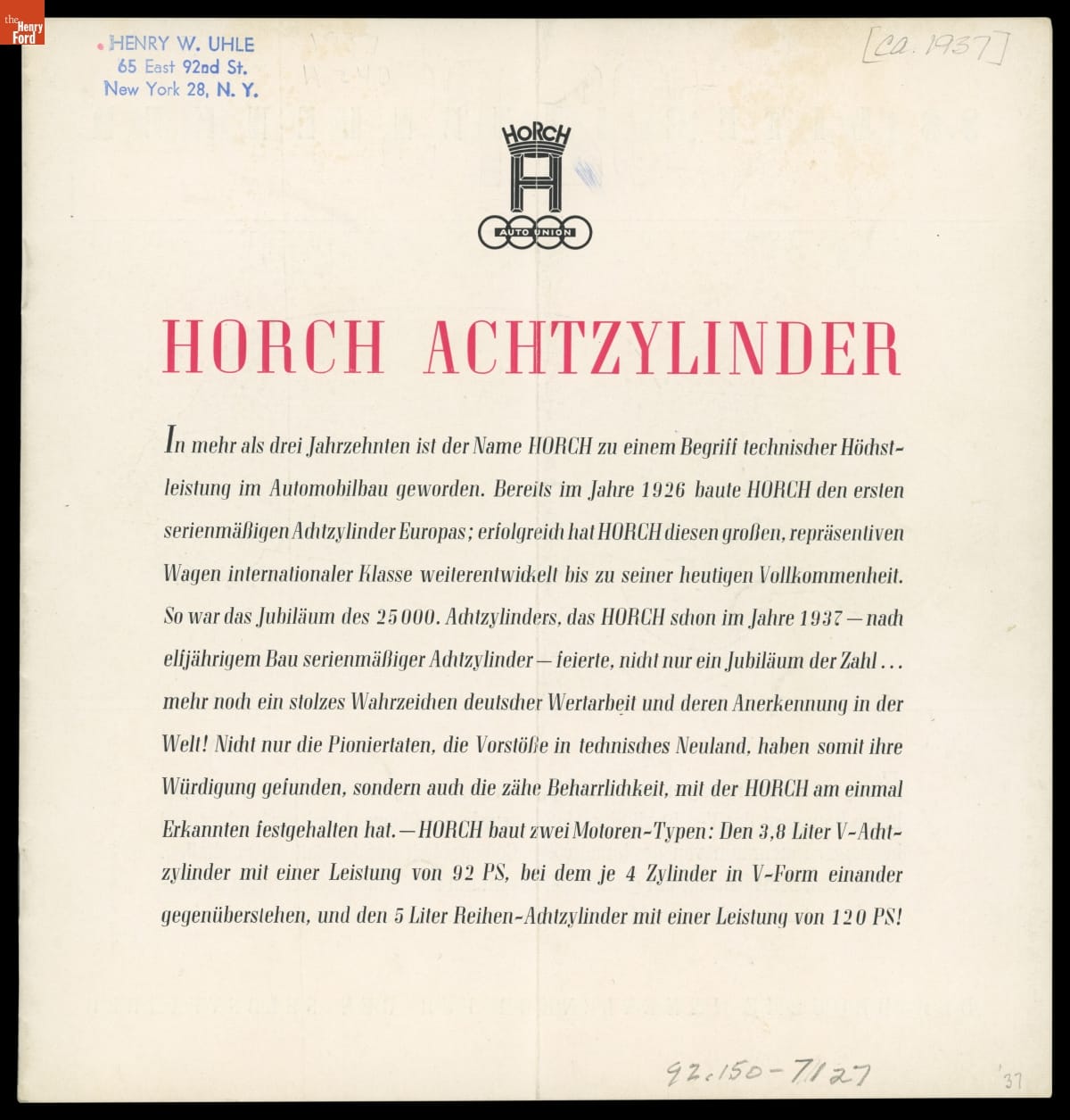 Auto Union Sales Catalog, Horch Brand Automobiles, circa 1937