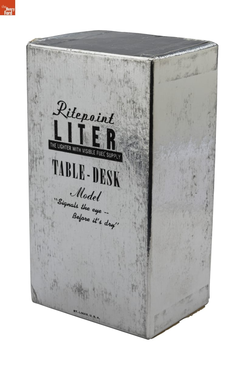 Ritepoint / LITER / THE LIGHTER WITH VISIBLE FUEL SUPPLY / TABLE-DESK / Model / "Signals the eye-- Before it's dry" / ST. LOUIS, U.S.A.