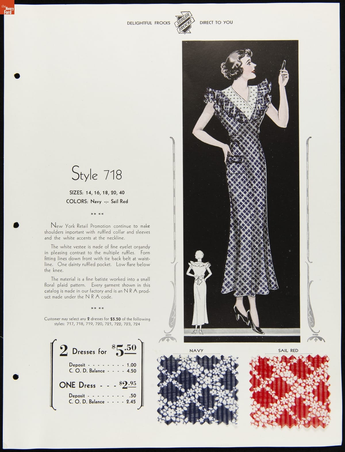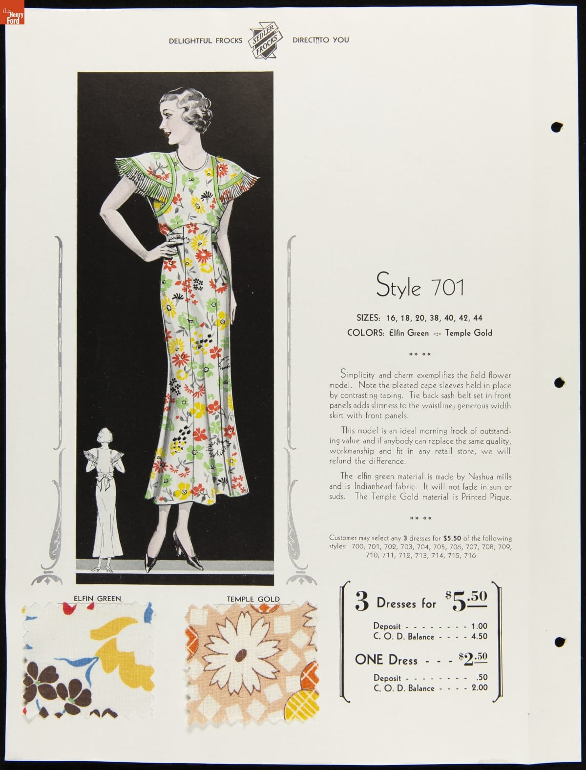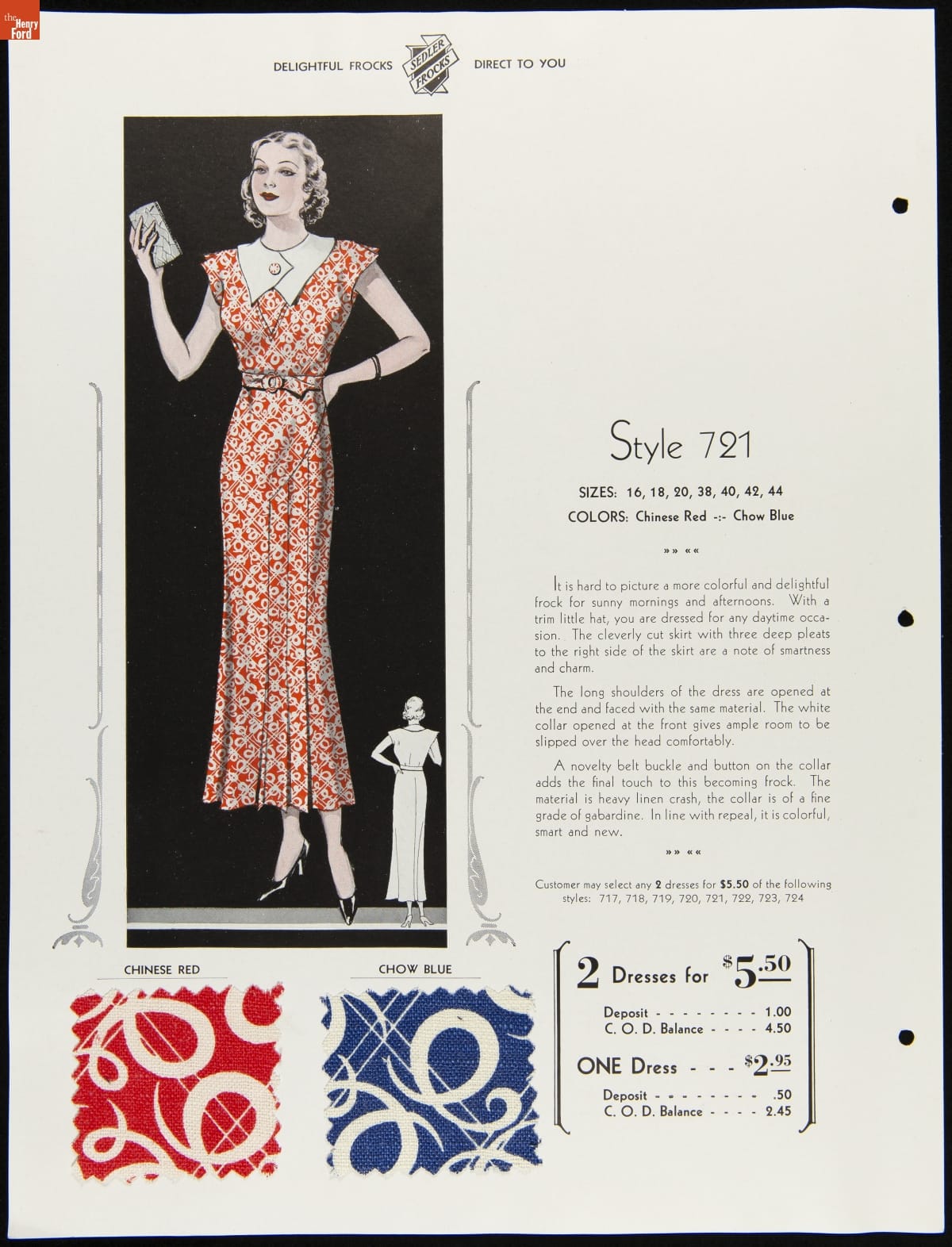 I.V. Sedler Catalog, "The Nation's Stylists Present Sedler Frocks," 1934