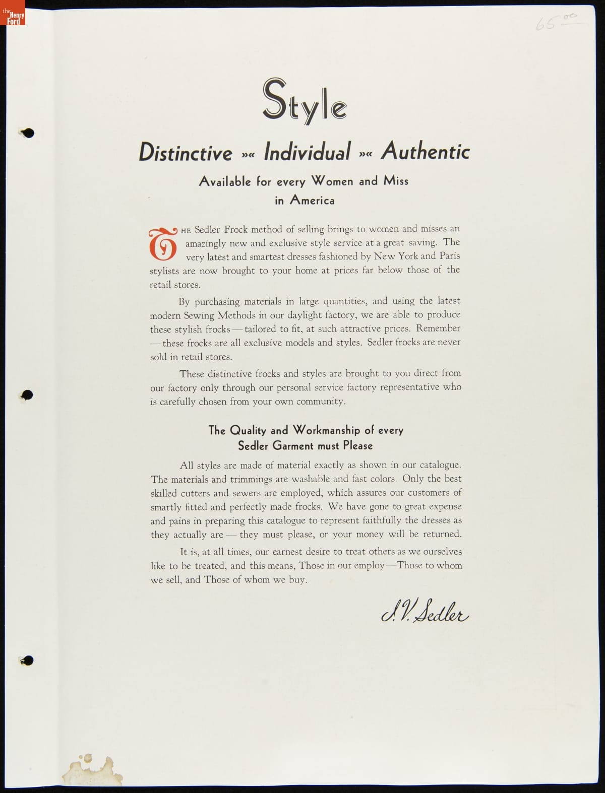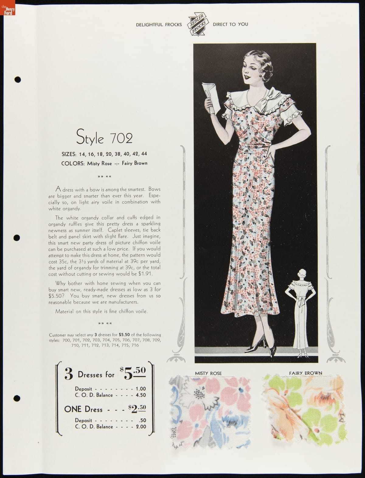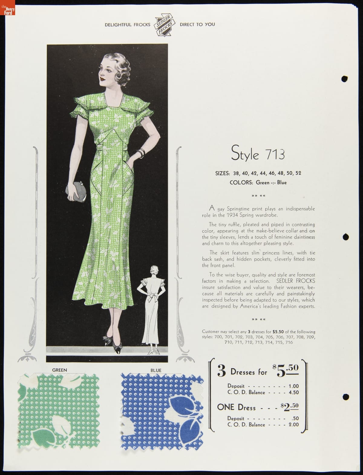 I.V. Sedler Catalog, "The Nation's Stylists Present Sedler Frocks," 1934