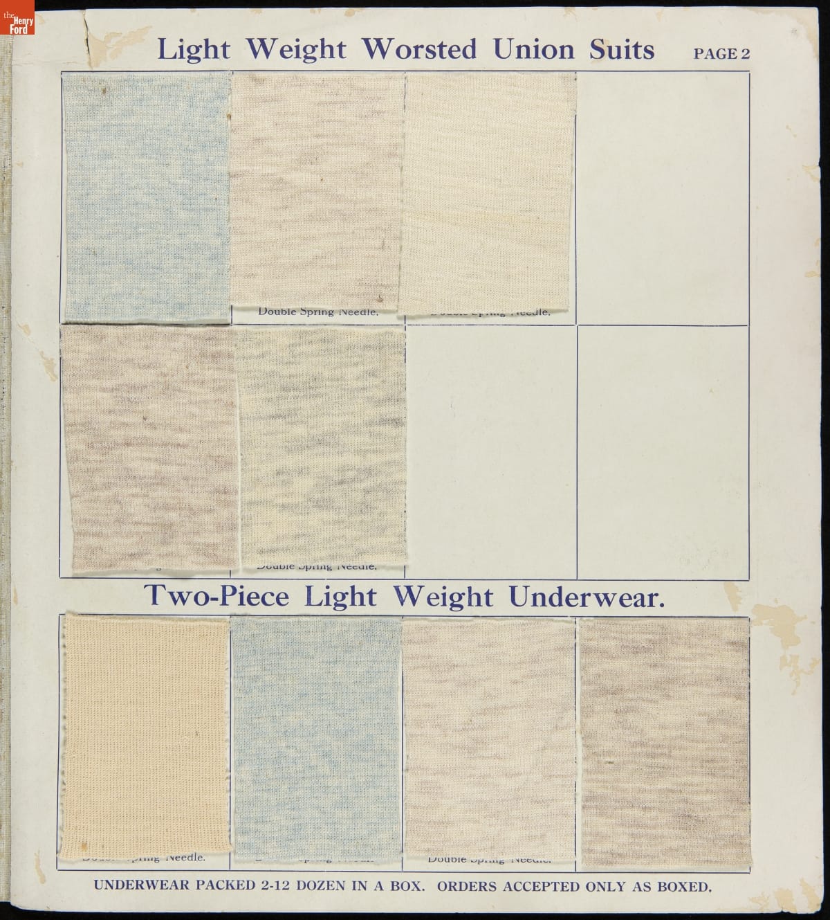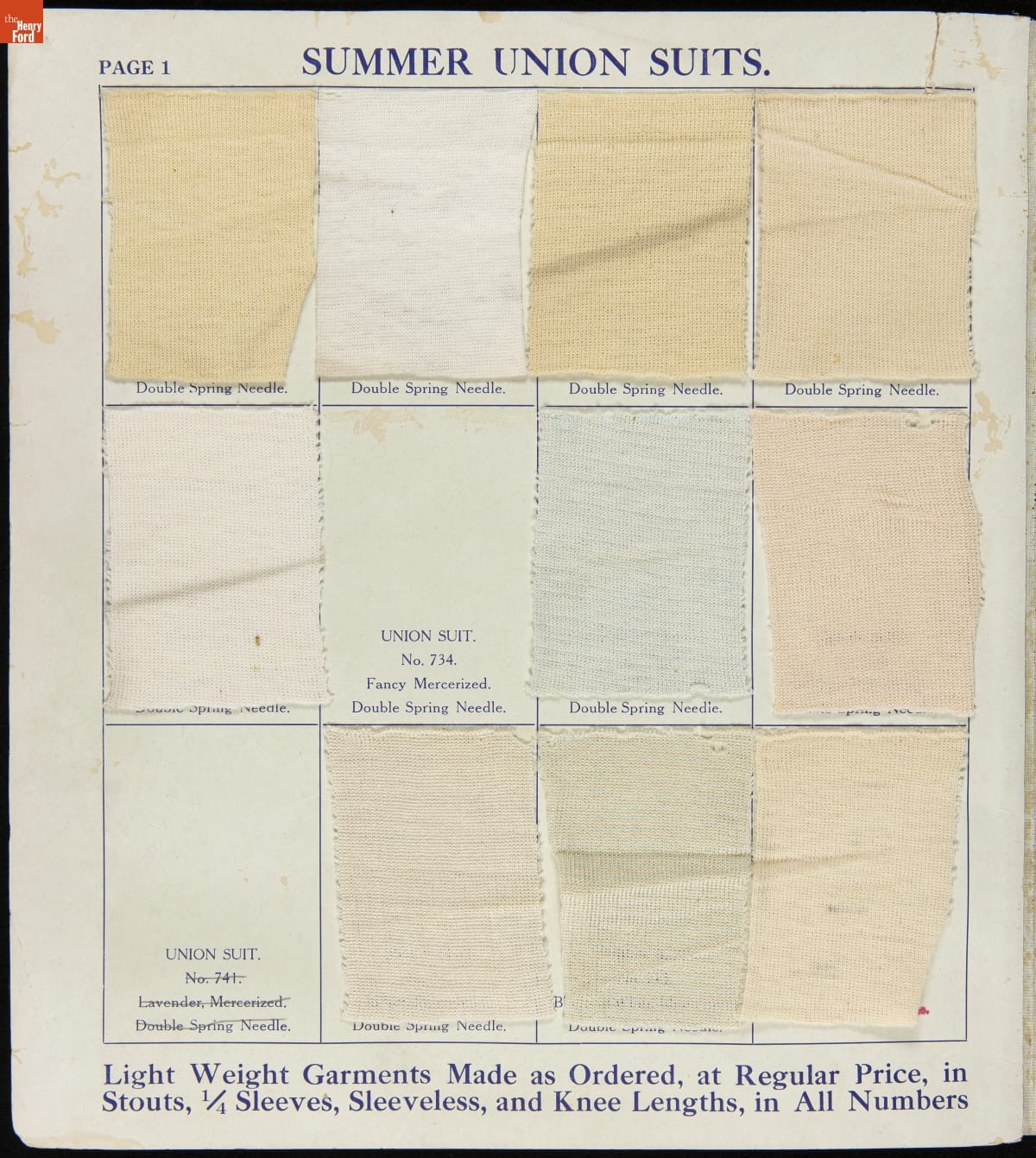 Stephenson Underwear Mills Summer Line Fabric and Color Card, 1912
