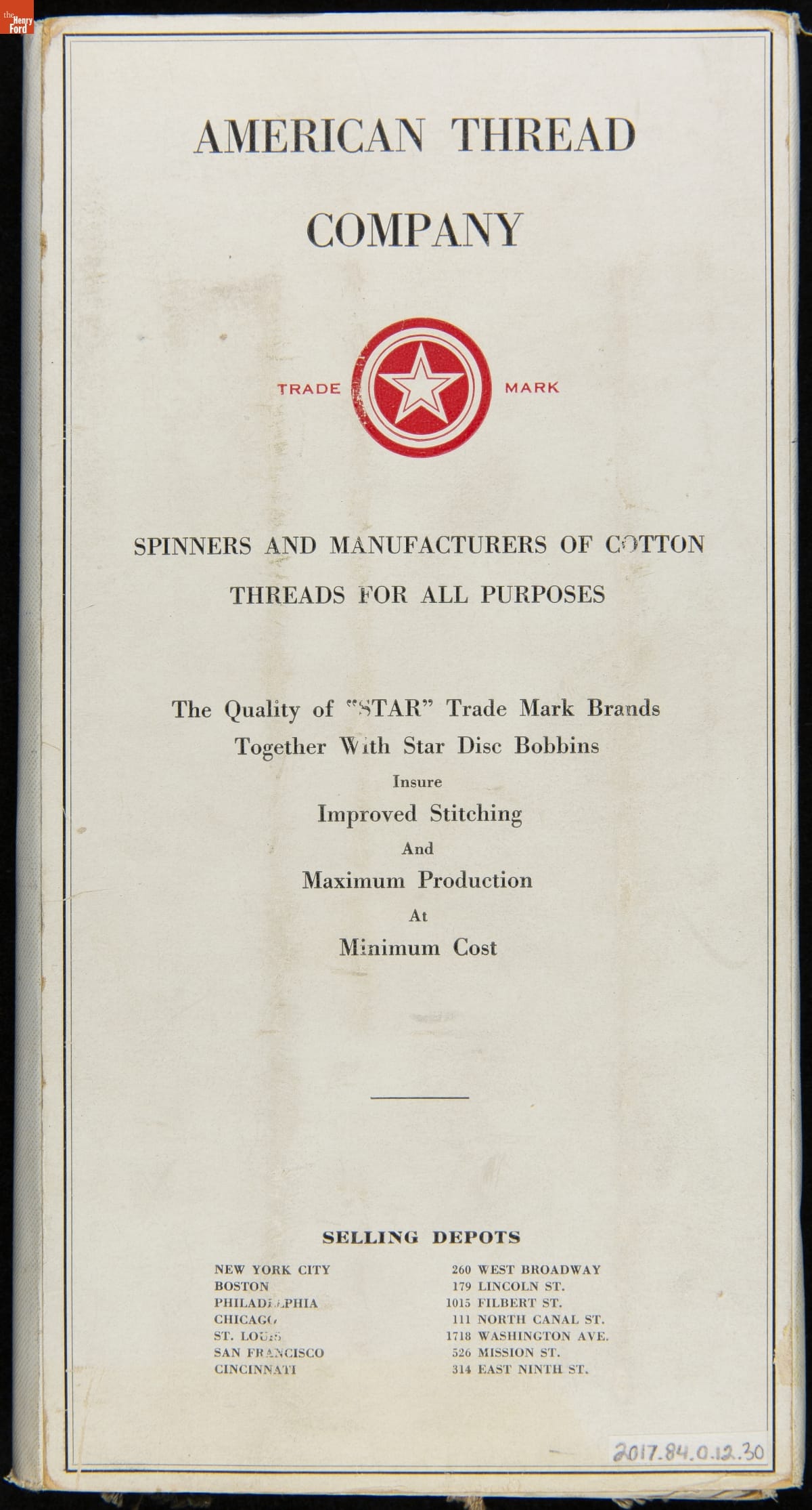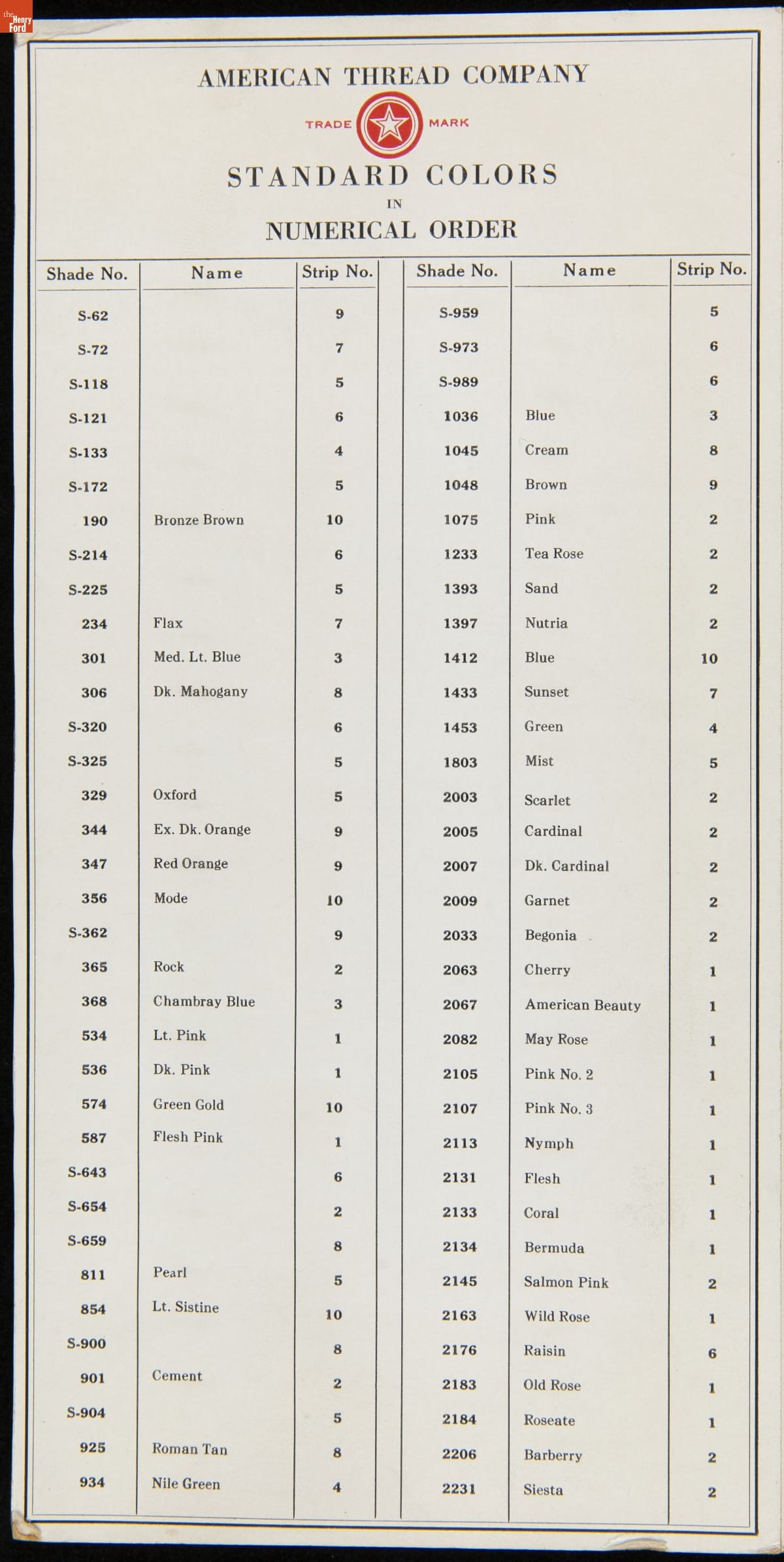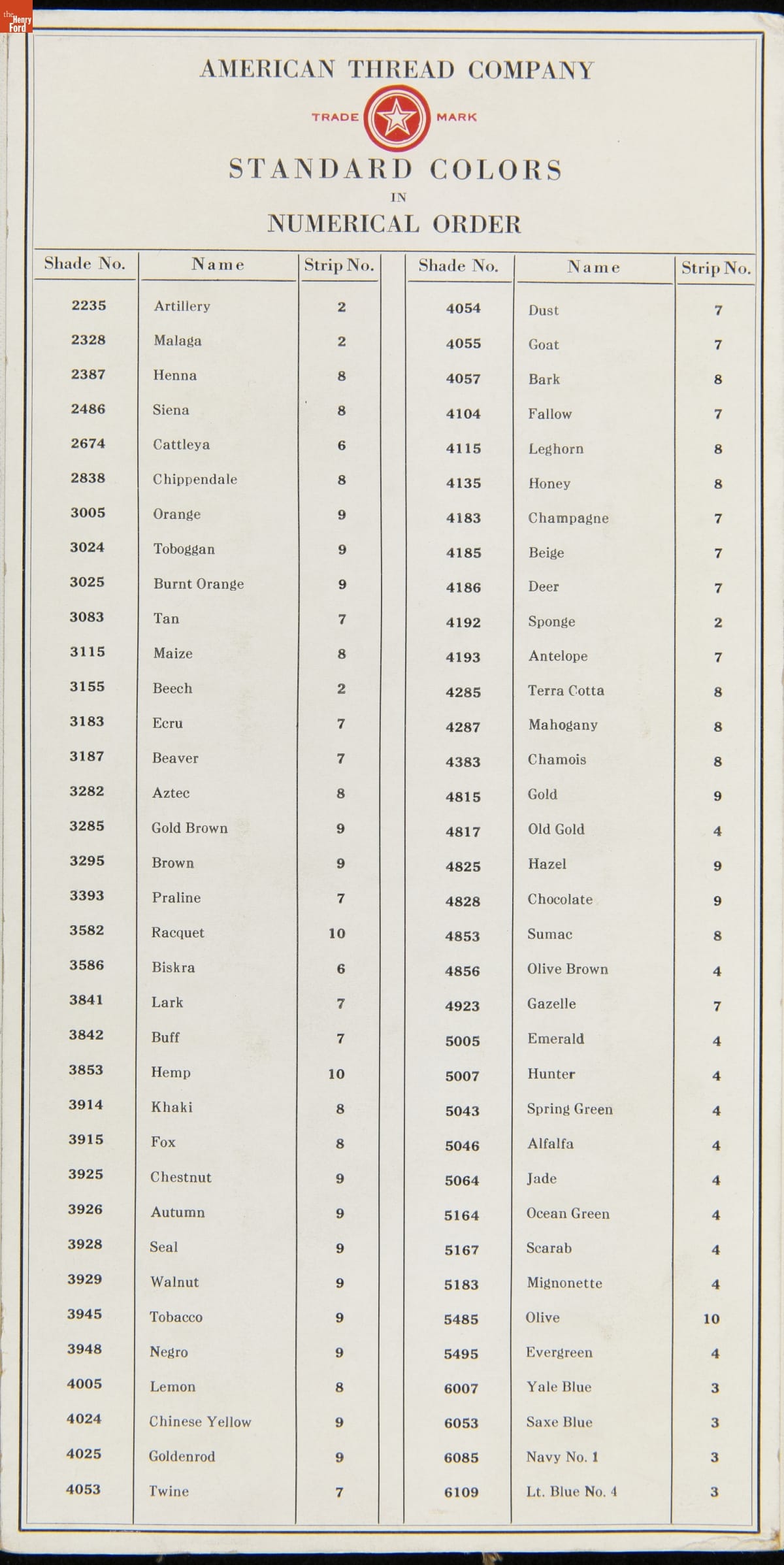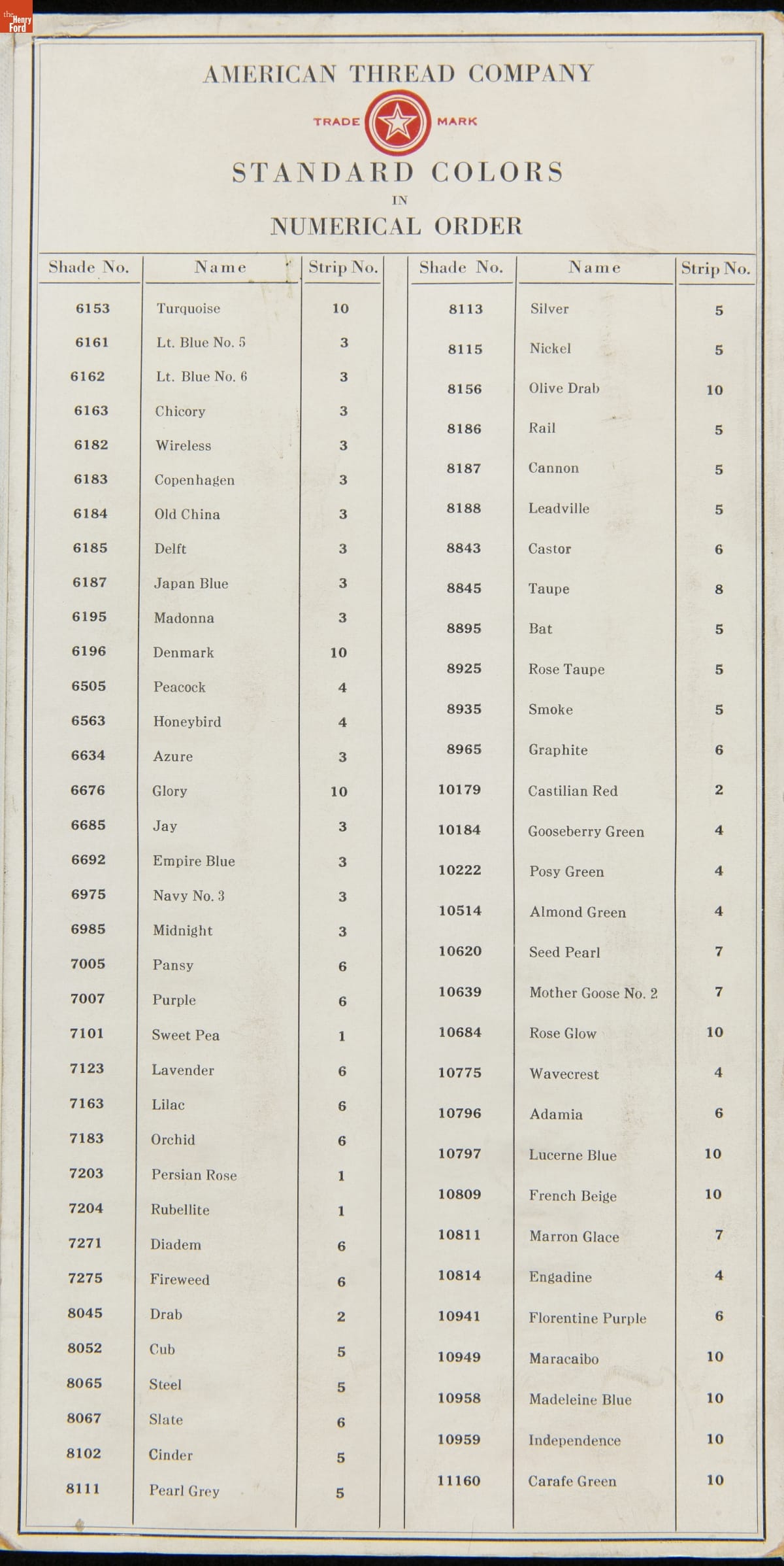 "American Thread Company Standard Colors for Manufacturing Trade," 1857-1910