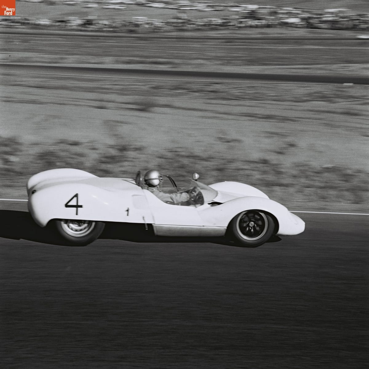 Dave Friedman captured and preserved auto racing history through his photography. His work -- and his collection of works by other photographers -- documents key races, cars, and teams. The 4th annual Grand Prix for Sports Cars attracted some of the best-known U.S. and international drivers to the 3.275-mile course at Riverside, California, in 1961. Australian Jack Brabham bested the field.