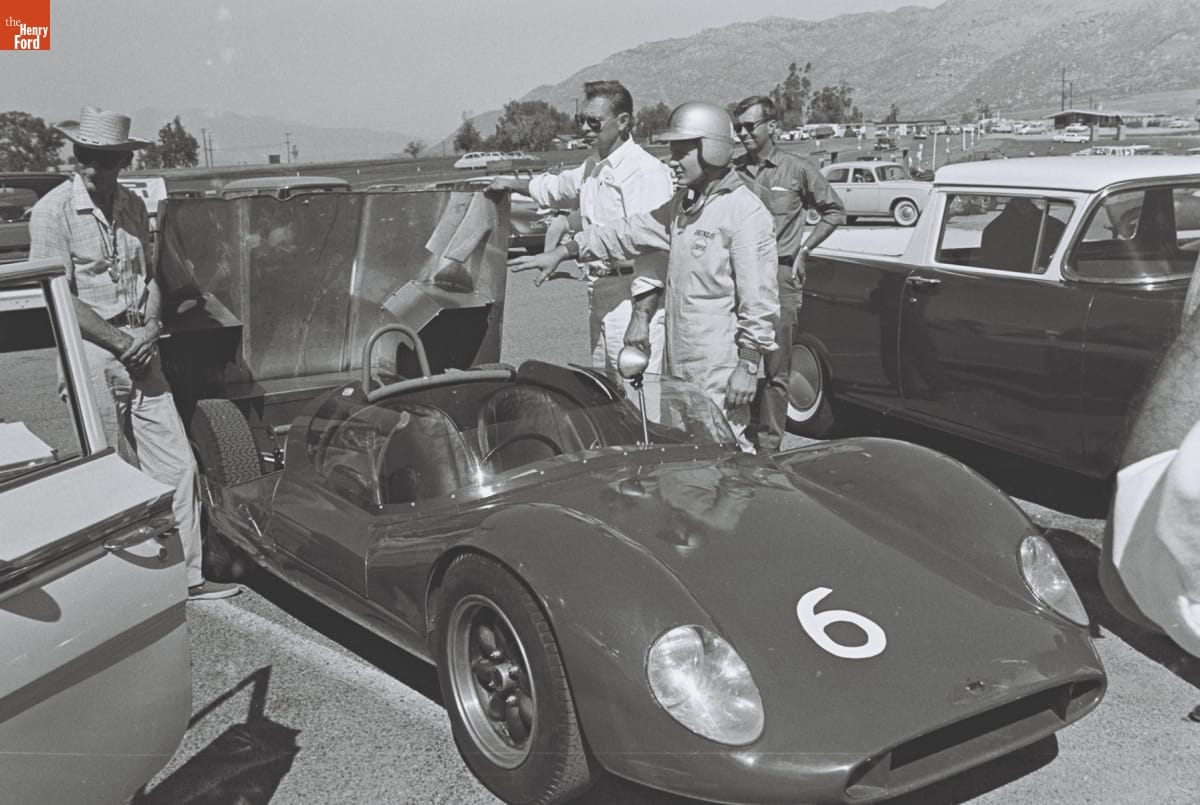 Preparing for the 4th Annual Grand Prix for Sports Cars, Riverside, California, October 1961