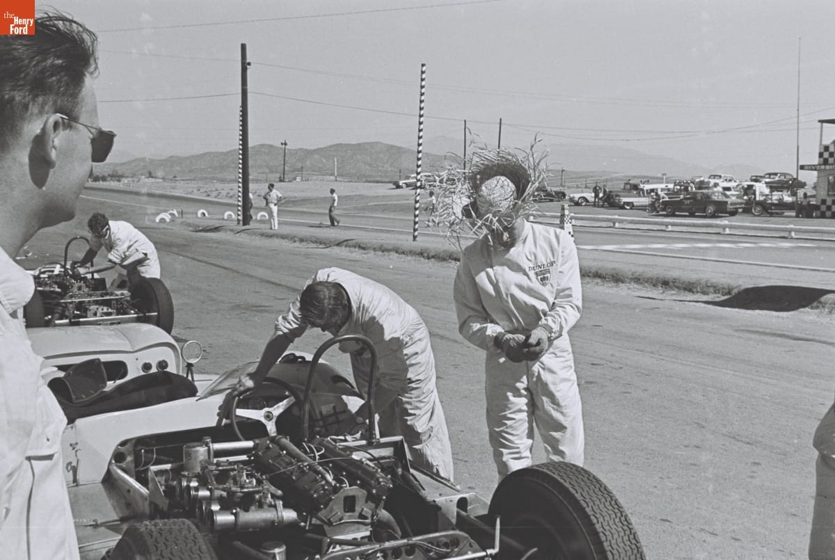 Preparing for the 4th Annual Grand Prix for Sports Cars, Riverside, California, October 1961