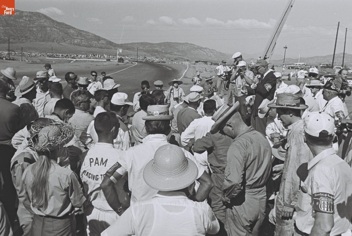 Preparing for the 4th Annual Grand Prix for Sports Cars, Riverside, California, October 1961
