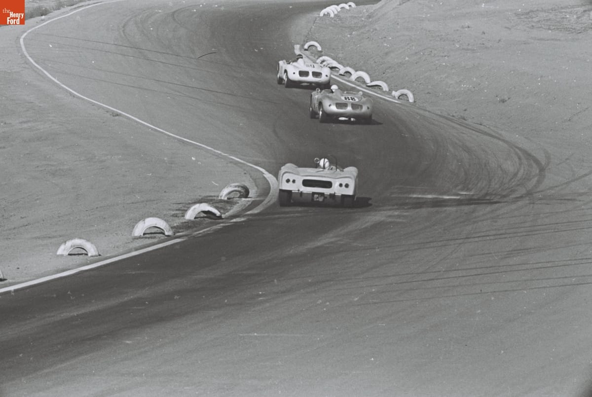 Cars Driven by Ken Miles, Jack McAfee, and Stirling Moss in the 4th Annual Grand Prix for Sports Cars, Riverside, California, October 1961