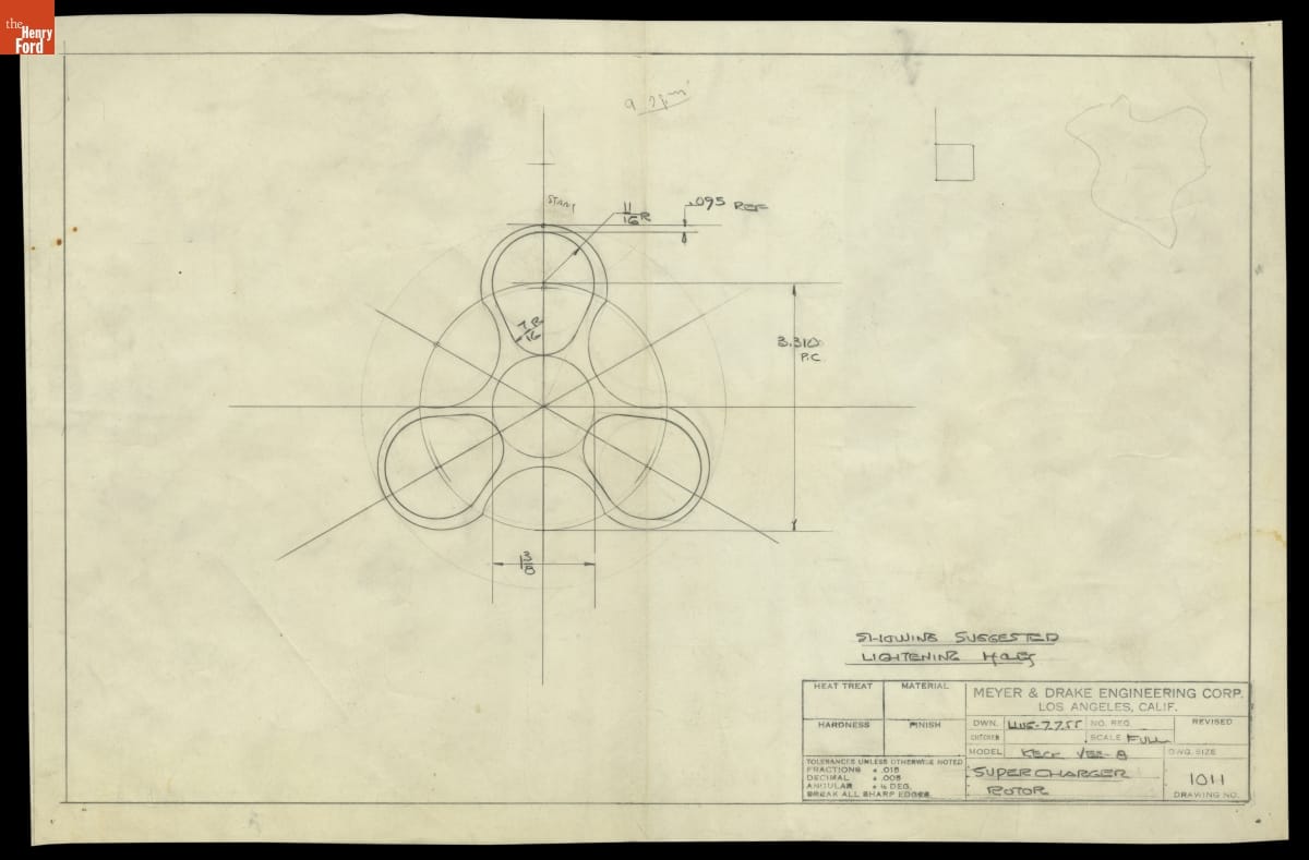 Drawing, "Supercharger Rotor," Keck V-8 Engine, July 7, 1955