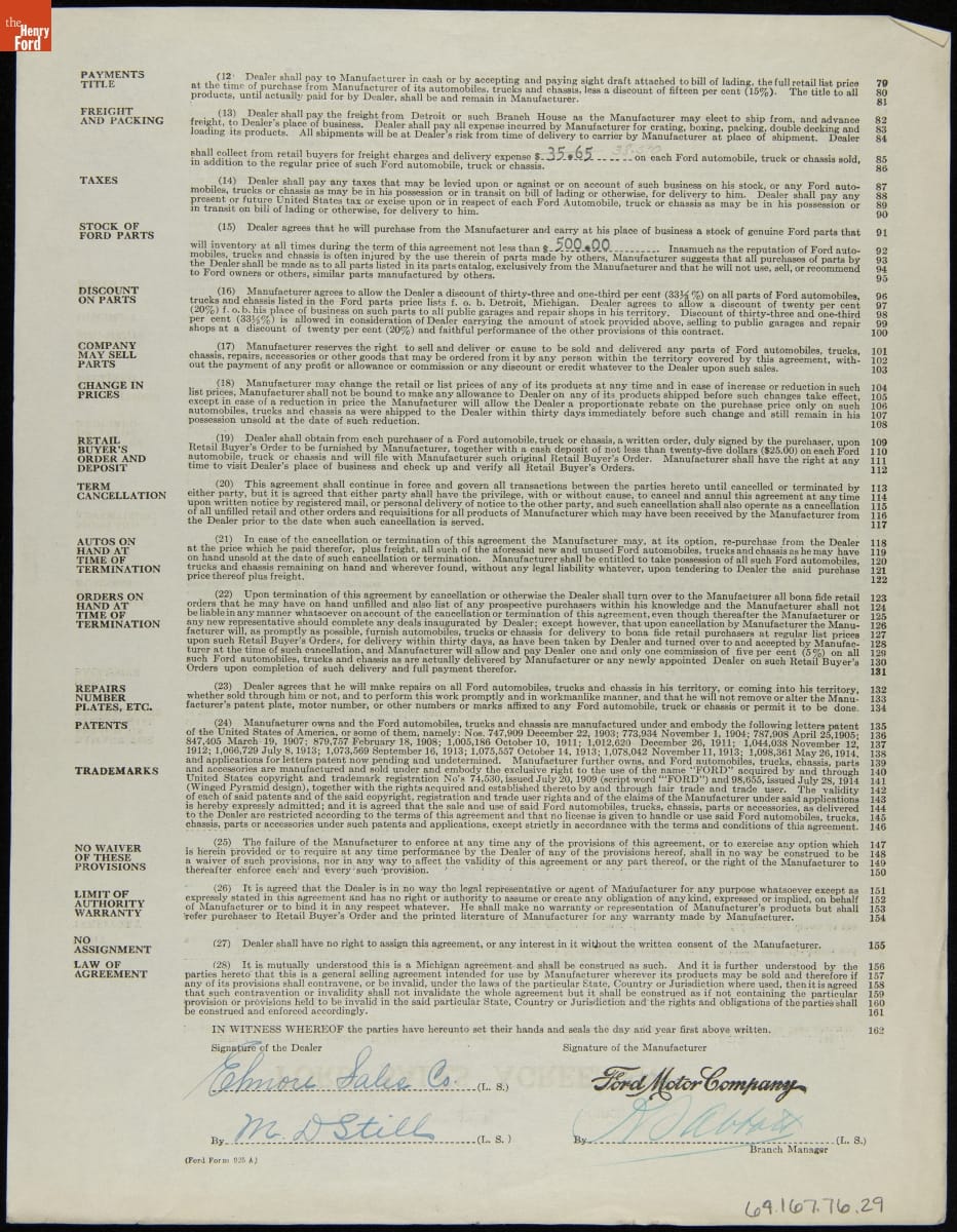 Cancelled Ford Sales Agreement for Elmore Sales Company, Wetumpka, Alabama, November 24, 1919