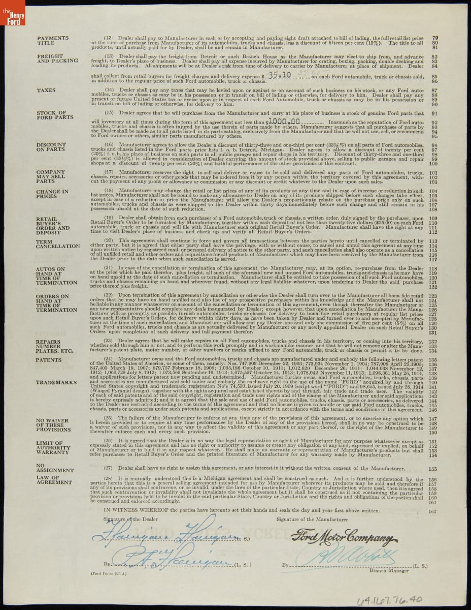 Cancelled Ford Sales Agreement for Flanigan and Flanigan, Winder, Georgia, March 31, 1921