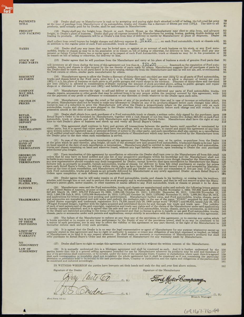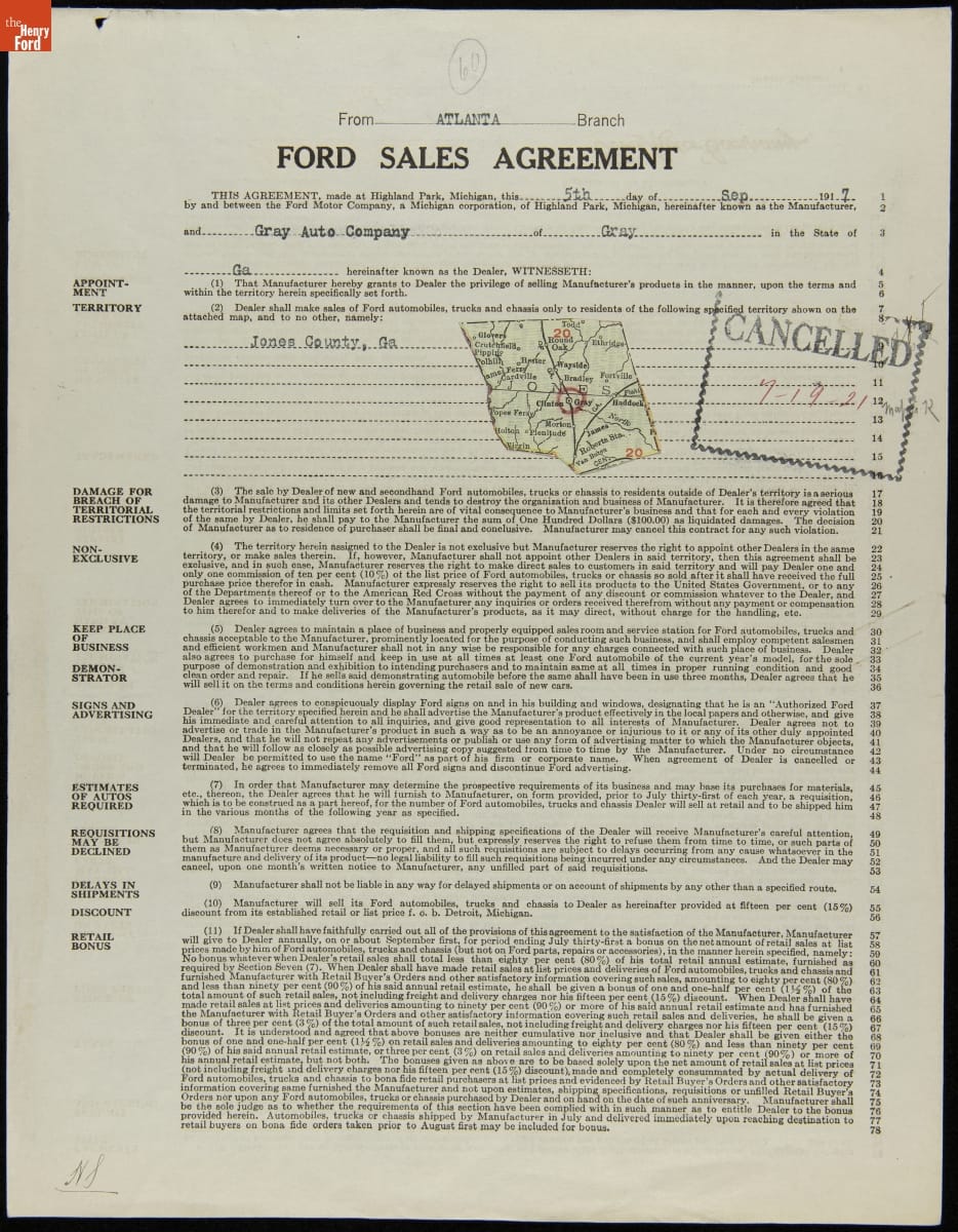 Cancelled Ford Sales Agreement for Gray Auto Company, Gray, Georgia, July 19, 1921