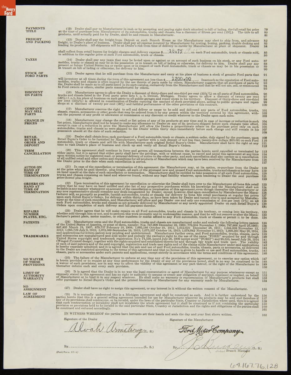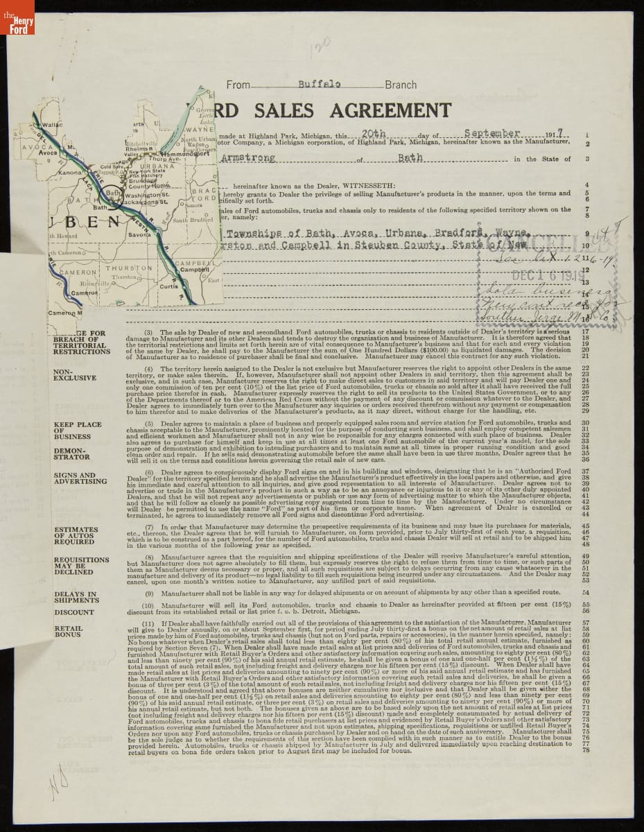 Cancelled Ford Sales Agreement for Alvah Armstrong, Bath, New York, December 16, 1919