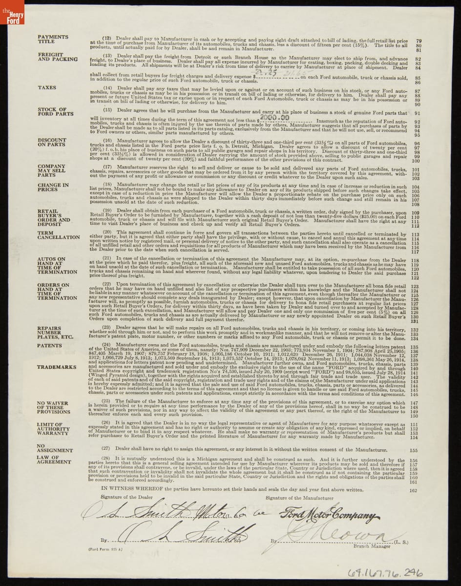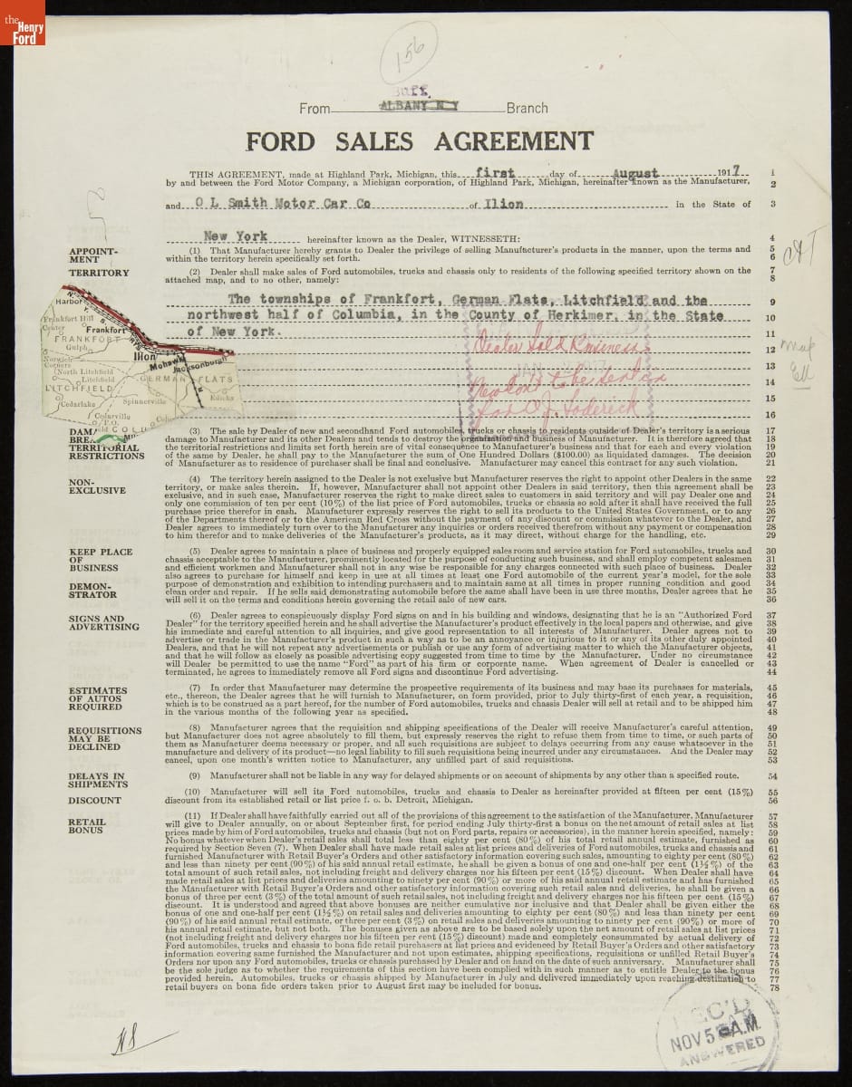 Cancelled Ford Sales Agreement for O.L. Smith Motor Car Co., Ilion, New York, August 1, 1917