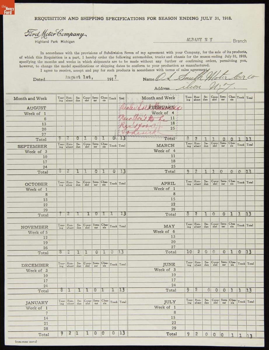 Cancelled Requisition Form for O.L. Smith Motor Car Co., Ilion, New York, August 1, 1917
