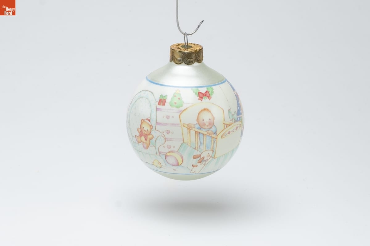 Already known for greeting cards, Hallmark introduced a line of Christmas ornaments in 1973. The company's annual release of an increasing array of ornaments appealed to customers' interest in marking memories and milestones as well as expressing one's personality and unique tastes. Purchasing an ornament like this one would bring back happy family memories of that event year after year.