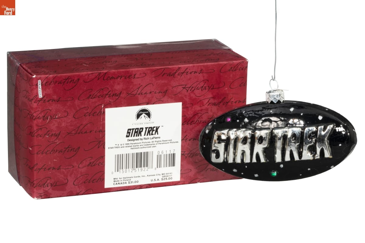 Paramount / A VIACOM COMPANY / STAR TREK / Designed by Rich LaPierre / TM (R) & (C) 1999 Paramount Pictures. All Rights Reserved. / STAR TREK and related marks are trademarks of Paramount Pictures. / Hallmark authorized user. / Mfd. for Hallmark Cards, Inc., Kansas City, MO 64141 / Made in Poland QBG6117