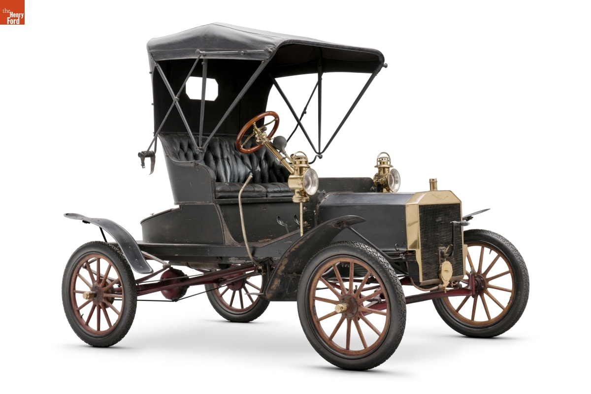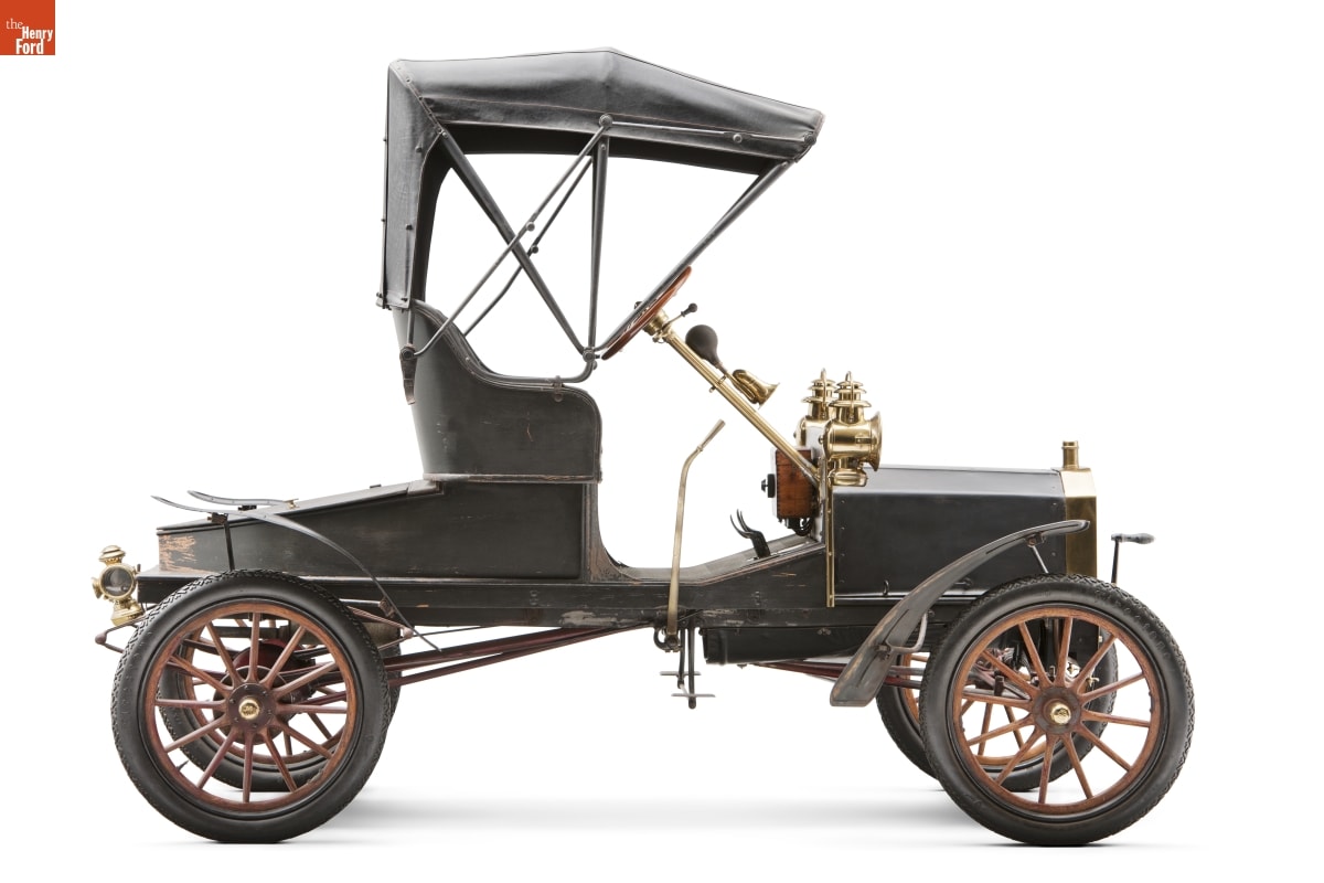 Two-seater runabouts like this 1906 Ford Model N were favored by middle-class Americans who could afford one. They were fast and rugged. Most runabouts featured one- or two-cylinder engines and bicycle-style chain drives. But this Ford Model N offered four cylinders and a shaft drive, plus it cost less. At $500, it became the bestselling car in America.