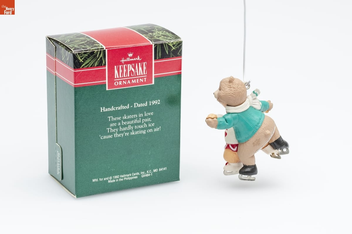 Hallmark / KEEPSAKE / ORNAMENT / Handcrafted - Dated 1992 / These skaters in love / are a beautiful pair, / They hardly touch ice / 'cause they're skating on air! / Mfd. for and (C) 1992 Hallmark Cards, Inc., K.C., MO 64141 / Made in the Philippines QX484-1