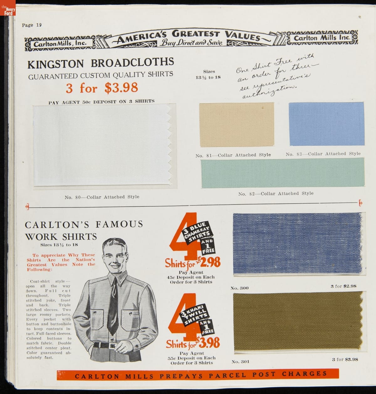 Carlton Mills, Inc. Sales Catalog for Men's Fashion, 1940-1950