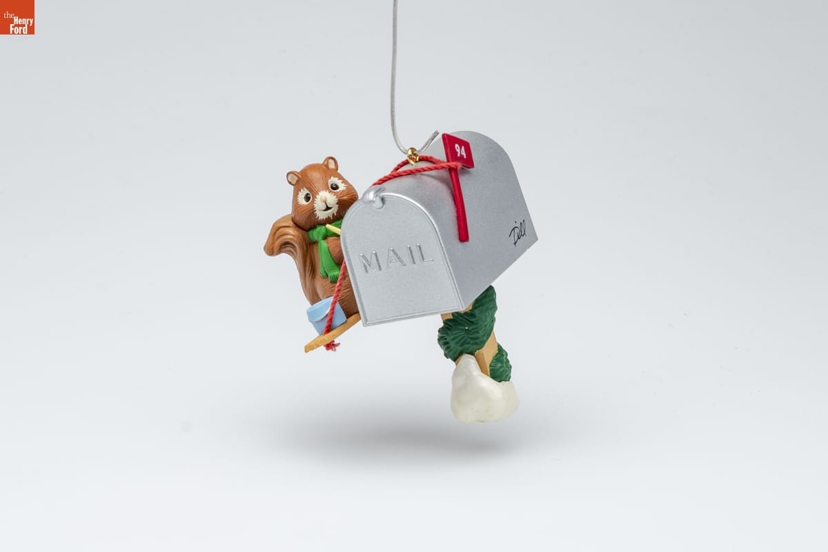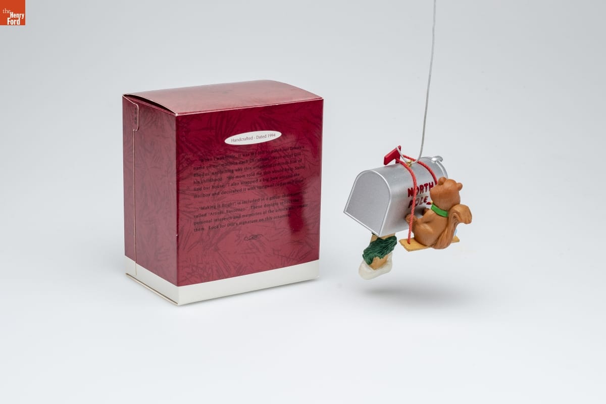 Handcrafted - Dated 1994 / "When I was little, it was my job to paint our family's / name on our mailbox each Christmas," says artist Dill / Rhodus, explaining why this ornament reminds him of / his childhood. "My mom told me this would help Santa / find our house. I also wrapped a big bow around the / mailbox and decorated it with sprigs of cedar and pine." / "Making It Bright" is included in a group of ornaments / called "Artists' Favorites." These designs reflect the / personal interests and memories of the artists who create / them. Look for Dill's signature on this ornament.