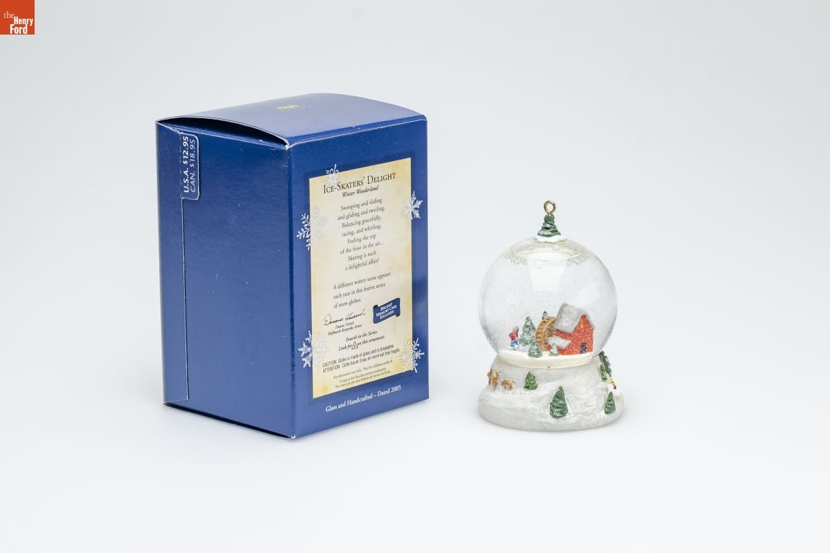 ICE-SKATER'S DELIGHT / Winter Wonderland / Swooping and sliding / and gliding and twirling, / Balancing gracefully, / racing, and whirling. / Feeling the nip / of the frost in the air... / Skating is such / a delightful affair! / A different wintry scene appears / each year in this festive series / of snow globes. / Duane Unruh / Hallmark Keepsake Artist / HOLIDAY / MEMORY CARD / ENCLOSED / Fourth in the Series. / Look for 4 on this ornament. / CAUTION: Globe is made of glass and is breakable. / ATTENTION: Ceste boule d'eau en verre est tres fragile. / For decorative use only. Not for children under 8. / Concu a des fins decoratives seulement. / Ne convient pas aux enfants de moins de 8 ans. / Glass and Handcrafted - Dated 2005