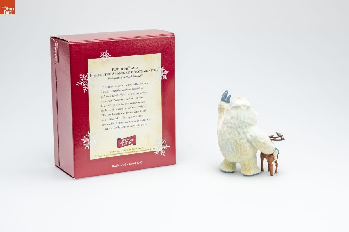 RUDOLPH [R] AND / BUMBLE THE ABOMINABLE SNOWMONSTER [TM] / Rudolph the Red-Nosed Reindeer [R] / No Christmas celebration would be complete / without the holiday heroics of Rudolph the / Red-Nosed Reindeer [R] and the loud by lovable / Abominable Snowman, Bumble. For years, / Rudolph's red nose has beamed its way into / the hearts of children and adults everywhere. / This year, Bumble joins his newfound friend / for a holiday hello. This magic moment is / captured for all time - a moment to be shared with / friends and family for many seasons to come. / HOLIDAY / MEMORY CARD / ENCLOSED / For decorative use only. Not for children under 8. / Concu a des fins decoratives seulement. Ne convient pas aux enfants de moins de 8 ans. / Handcrafted - Dated 2005