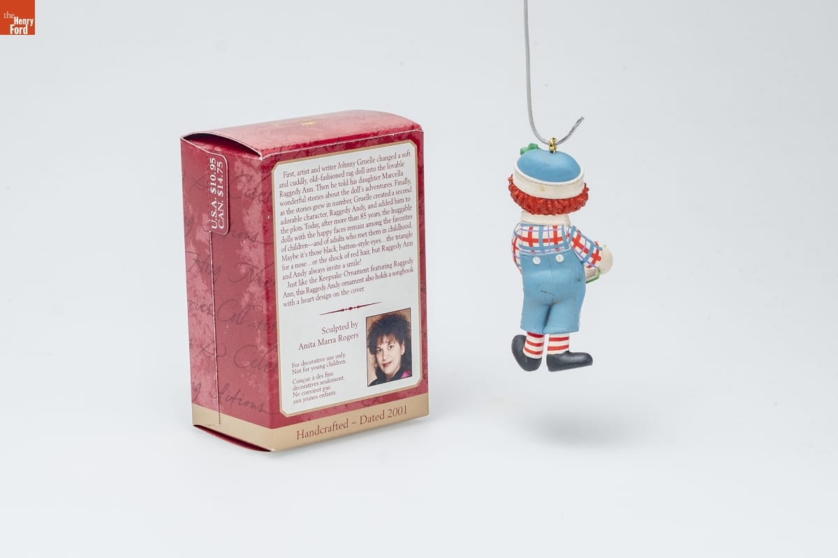 Already known for greeting cards, Hallmark introduced a line of Christmas ornaments in 1973. The company's annual release of an increasing array of ornaments appealed to customers' interest in marking memories and milestones as well as expressing one's personality and unique tastes. In 1974, Hallmark began producing ornaments featuring Raggedy Ann and Andy--the mop-headed characters based on stories by Johnny Gruelle.