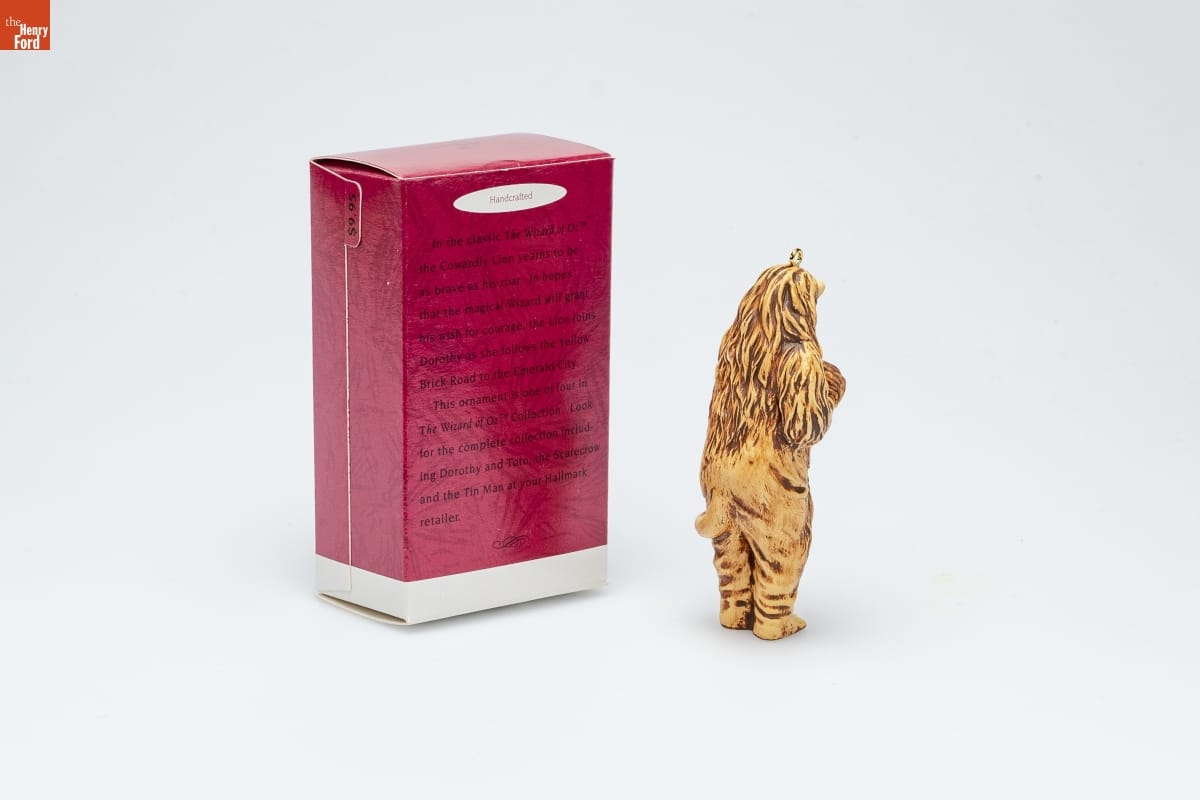 Handcrafted / In the classic The Wizard of Oz TM / the Cowardly Lion yearns to be / as brave as his roar. In hopes / that the magical Wizard will grant / his wish for courage, the Lion joins / Dorothy as she follows the Yellow / Brick Road to the Emerald City. / This ornament is one of four in / The Wizard of Oz TM Collection. Look / for the complete collection includ- / ing Dorothy and Toto, the Scarecrow / and the Tin Man at your Hallmark / retailer.