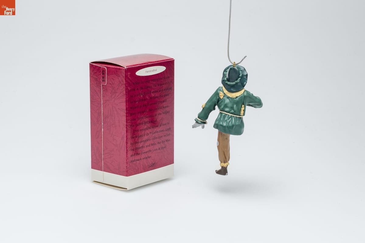 Handcrafted / When Dorothy meets the Scare- / crow in the classic The Wizard of Oz TM, / he is stuffed with straw and wishing / he had a brain. Hoping the great / Wizard in the Emerald City will / grant his wish, the tireless Scare- / crow joins Dorothy as she follows / the Yellow Brick Road. / This ornament is one of four in / The Wizard of Oz TM Collection. Look / for the complete collection includ- / ing Dorothy and Toto, the Tin Man / and the Cowardly Lion at your / Hallmark retailer.
