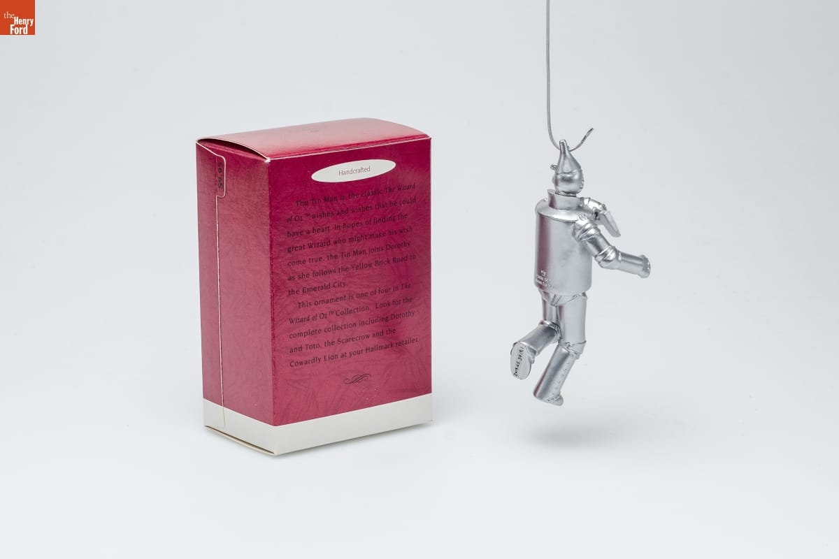 Handcrafted / The Tin Man in the classic The Wizard / of Oz TM wishes and wishes that he could / have a heart. In hopes of finding the / great Wizard who might make his wish / come true, the Tin Man joins Dorothy / as she follows the Yellow Brick Road to / the Emerald City. / This ornament is one of four in The / Wizard of Oz TM Collection. Look for the / complete collection including Dorothy / and Toto, the Scarecrow and the / Cowardly Lion at your Hallmark retailer.