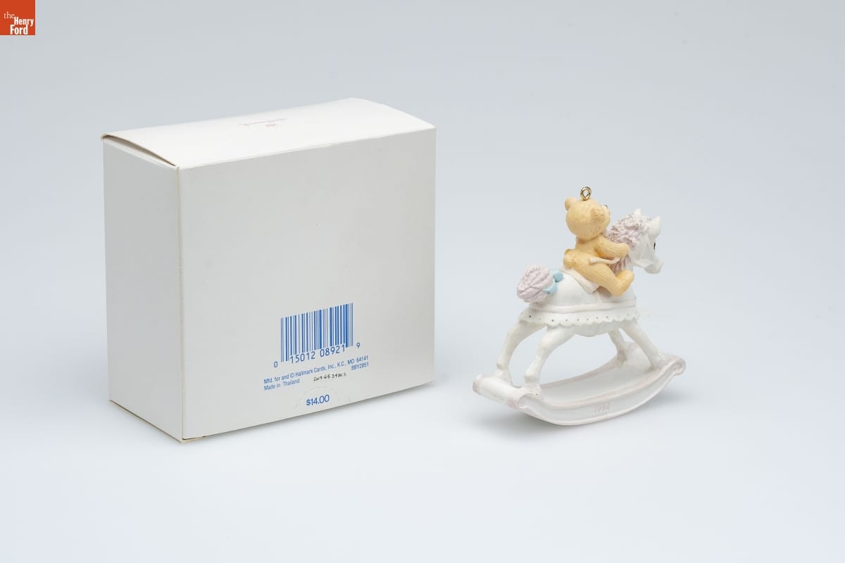 Already known for greeting cards, Hallmark introduced a line of Christmas ornaments in 1973. The company's annual release of an increasing array of ornaments appealed to customers' interest in marking memories and milestones as well as expressing one's personality and unique tastes. Purchasing an ornament like this one would bring back happy family memories of that event year after year.